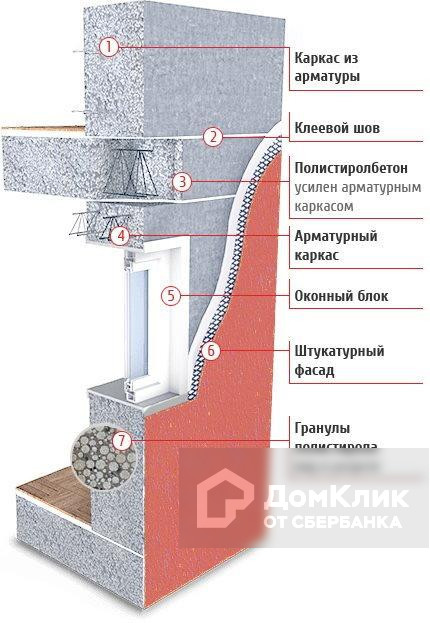образующих внешние и внутренние несущие стены дома, а также межэтажные полистиролбетонные плиты перекрытия.