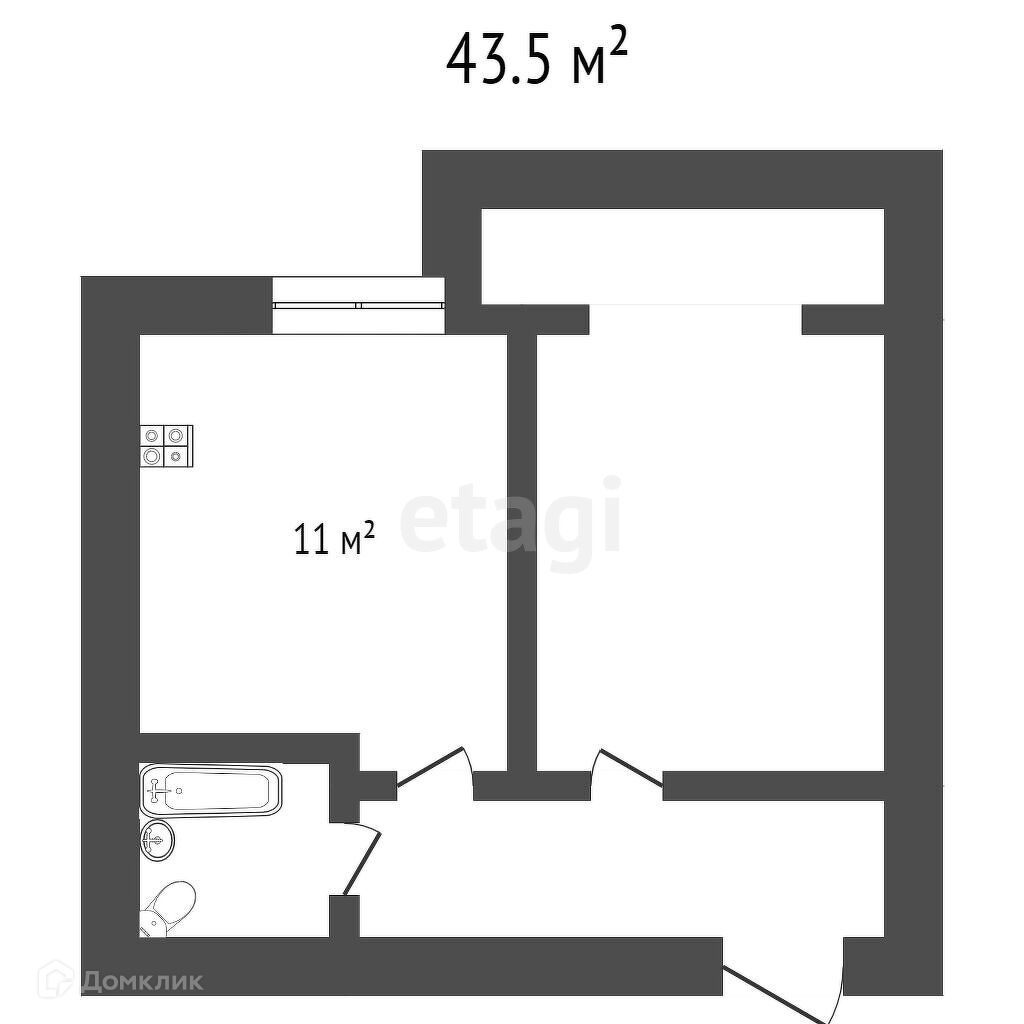 Общая площадь 43.5 м2