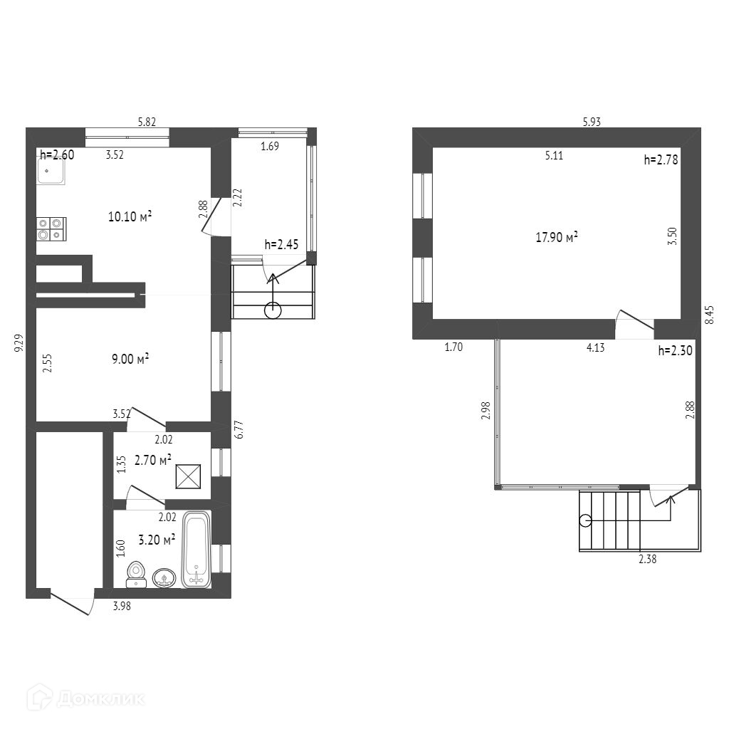 В доме расположена одна просторная комната-гостиная 17,9 кв.м, высокие потолки 2,8 м, окна пластиковые и прихожая-веранда 12 кв.м.