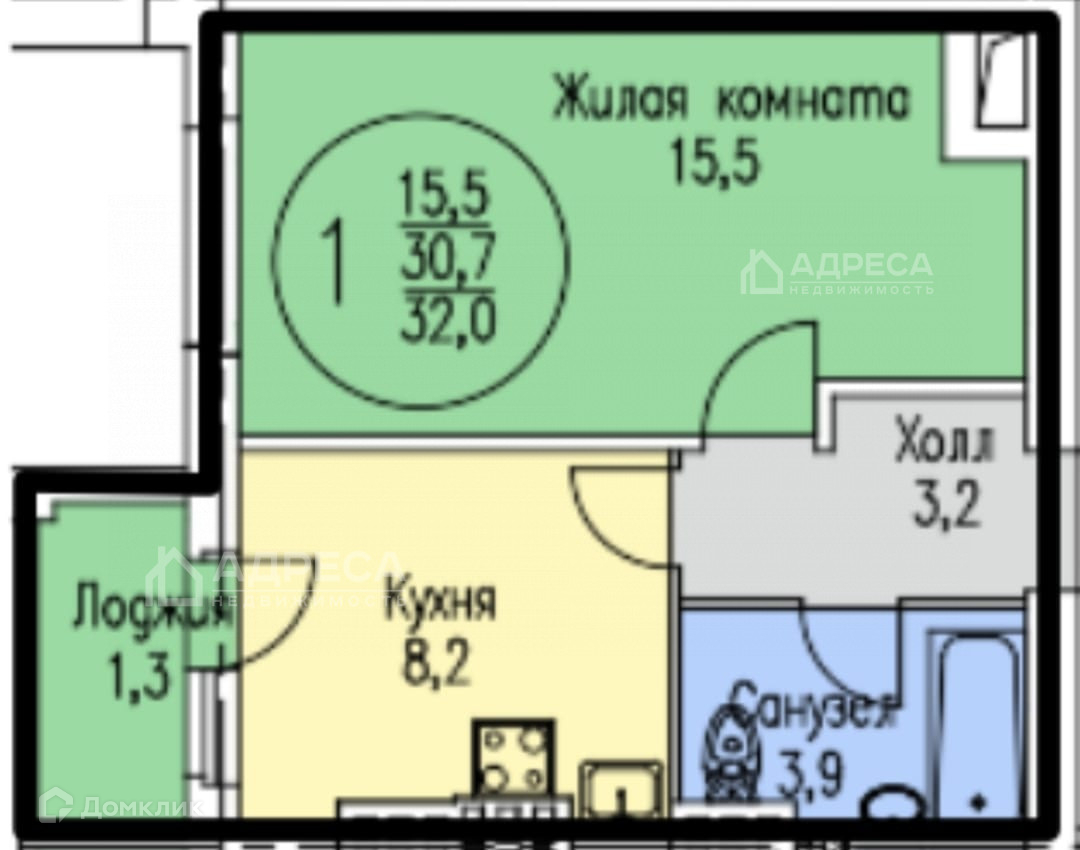 Общая площадь 31 м2