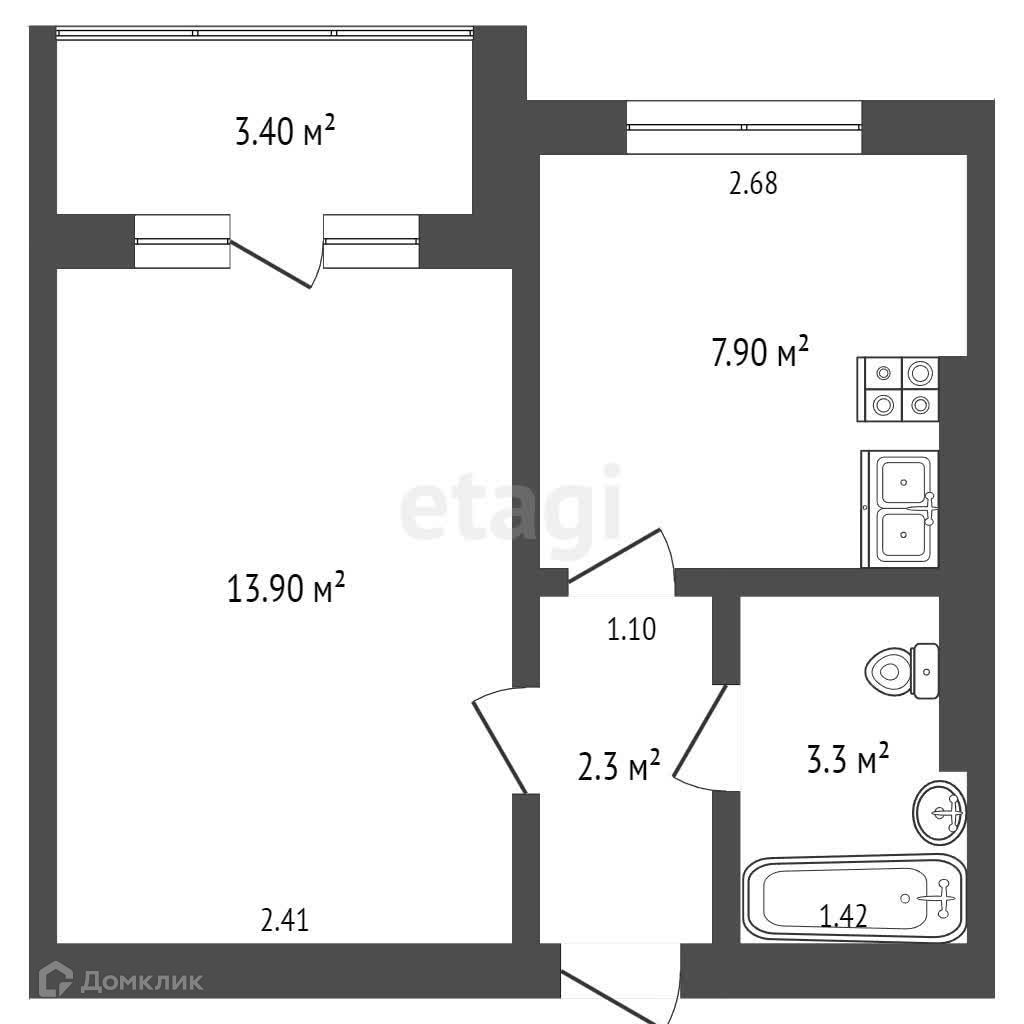 Общая площадь 28.9 м2