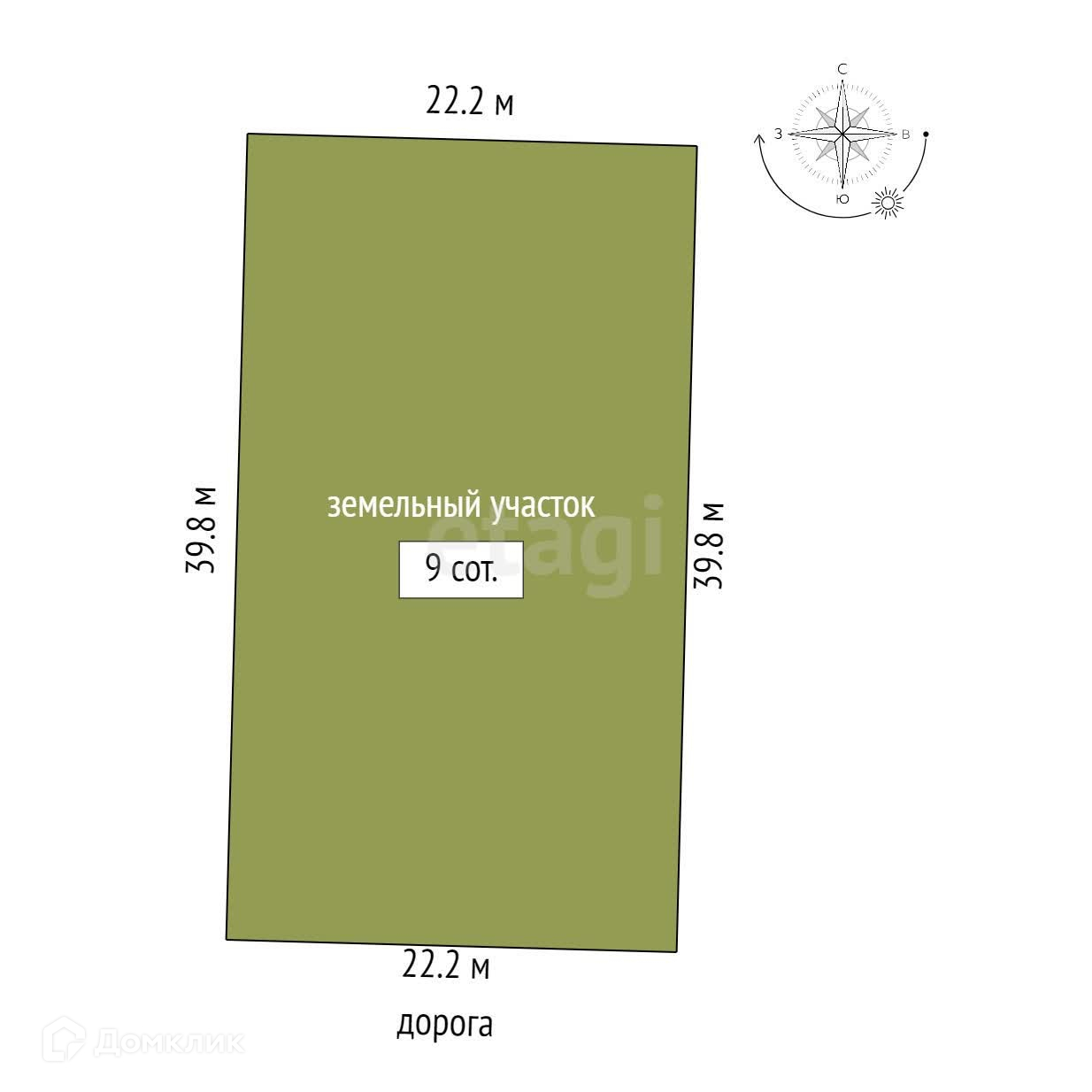 Площадь участка 9 сот.