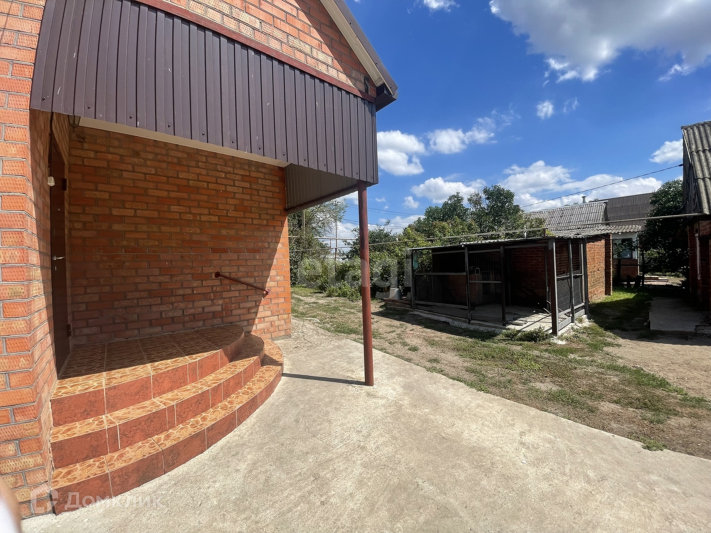 Во дворе имеются хозяйственные постройки: летняя кухня, сарай, вольер, постройки для содержания домашней птицы. Имеется роскошный сад и огород с выходом к реке.