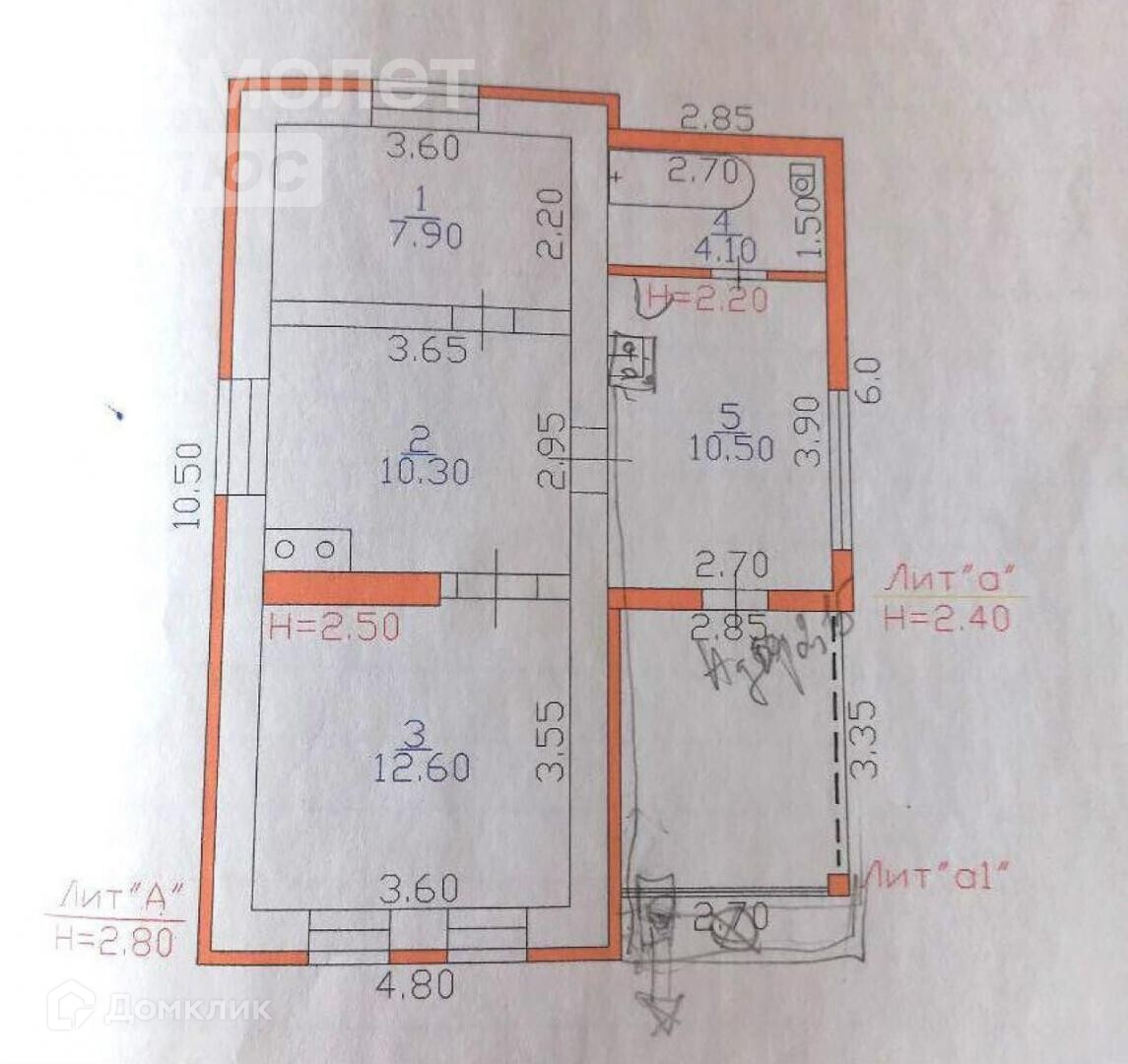 Высота потолков 2.5 м