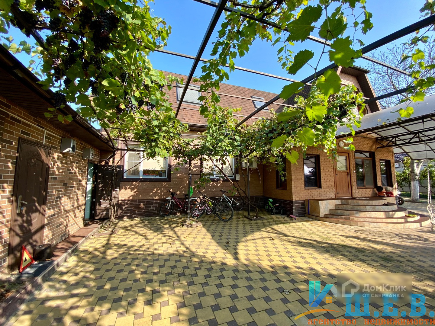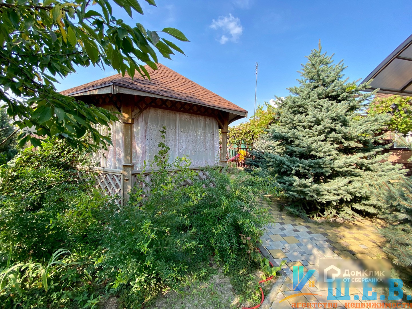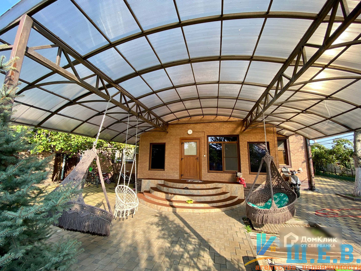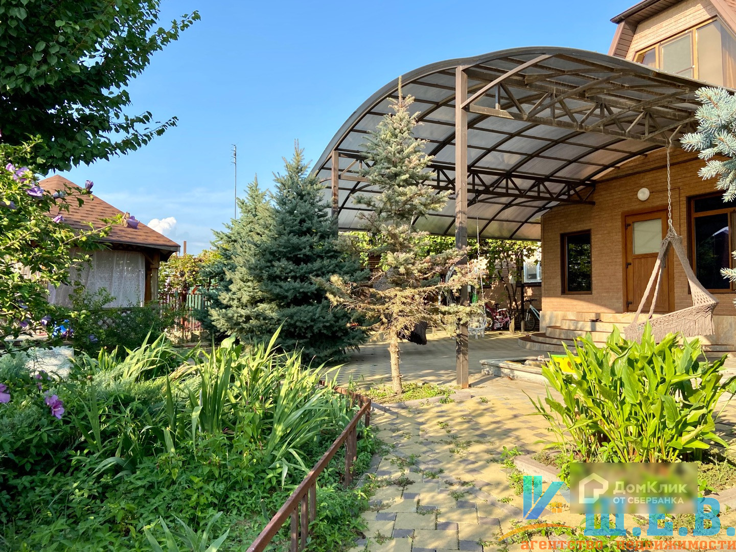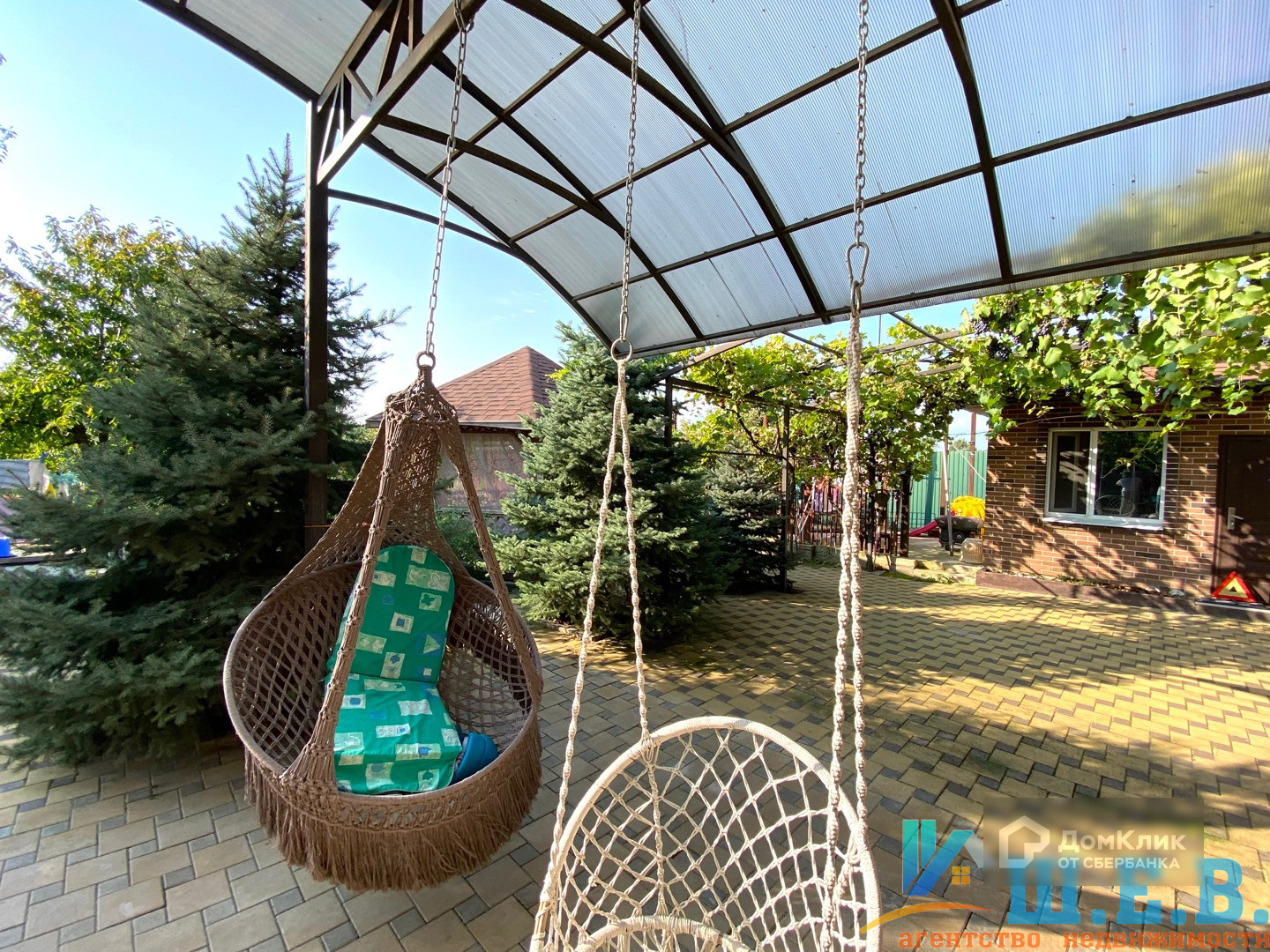 На участке 17.7 соток расположились гараж на несколько автомобилей, уютный двор с навесом, где можно отдохнуть на качелях прохладным вечером.