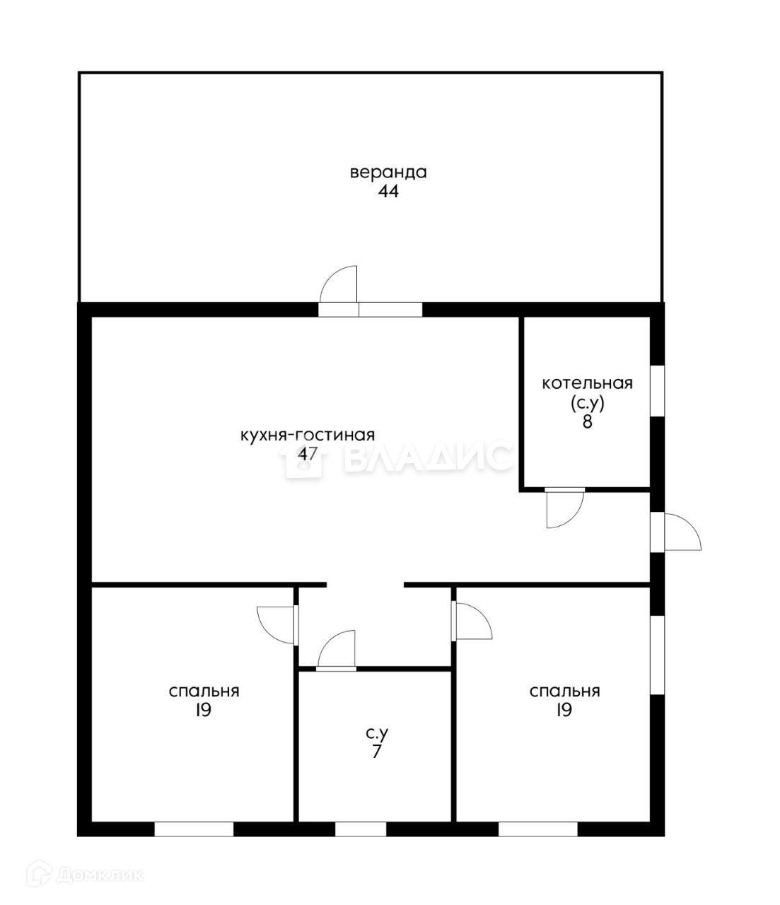 - Две уютные спальни и кухня-гостиная. При желании можно отделить кухню от гостиной.