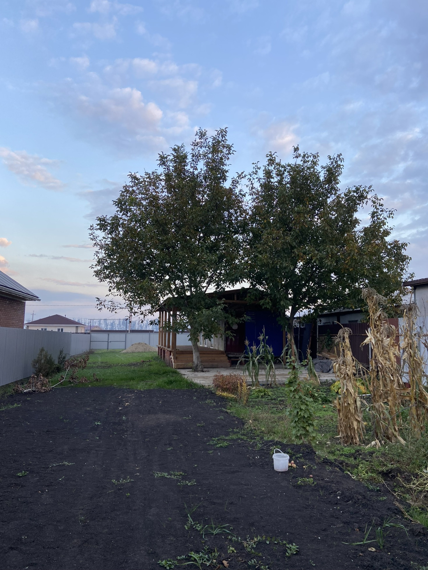 Хороший участок для строительства дома, участок полностью огорожен забором, стоит вагончик для переделки под дачный домик с деревянной  террасой.