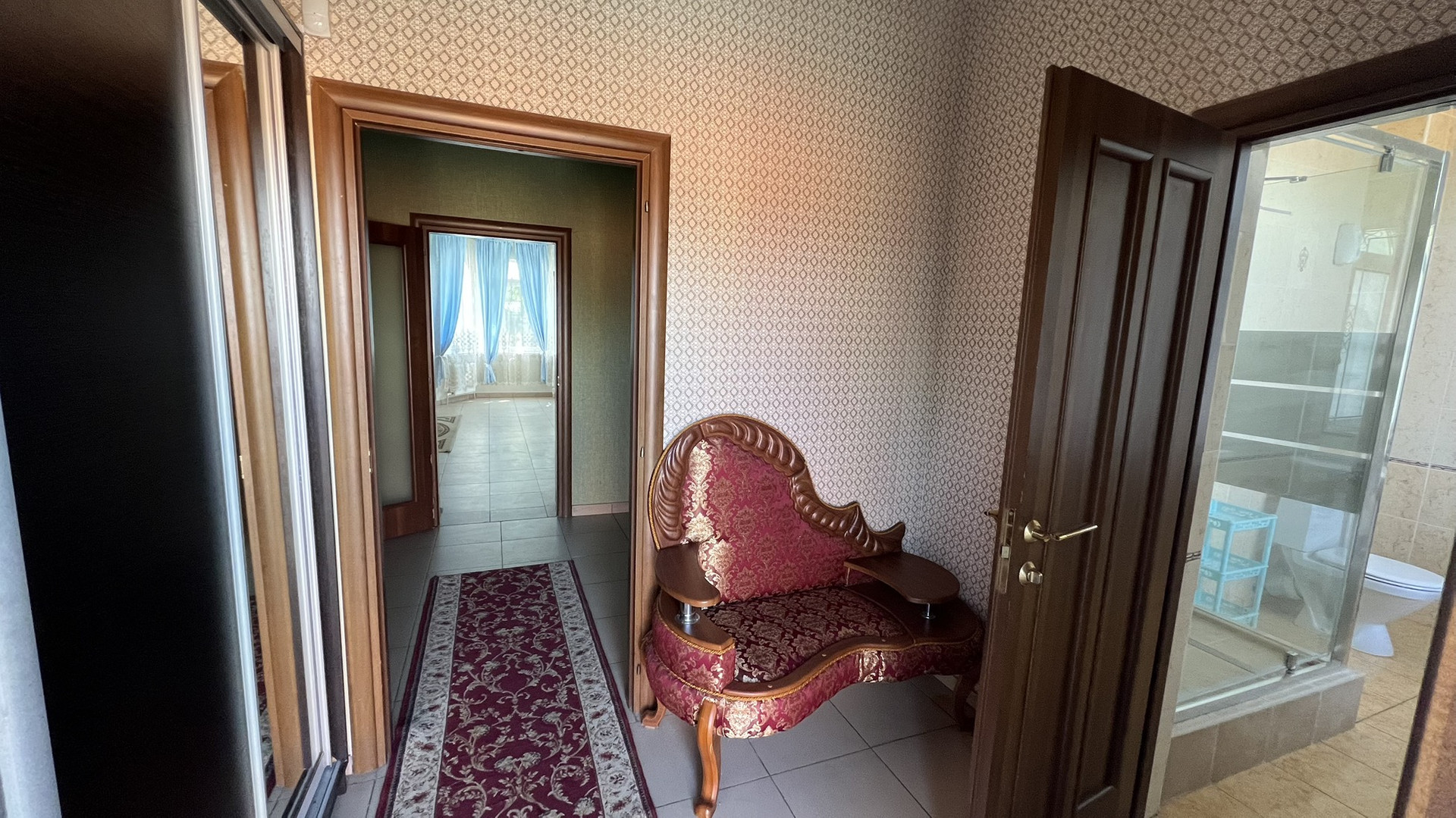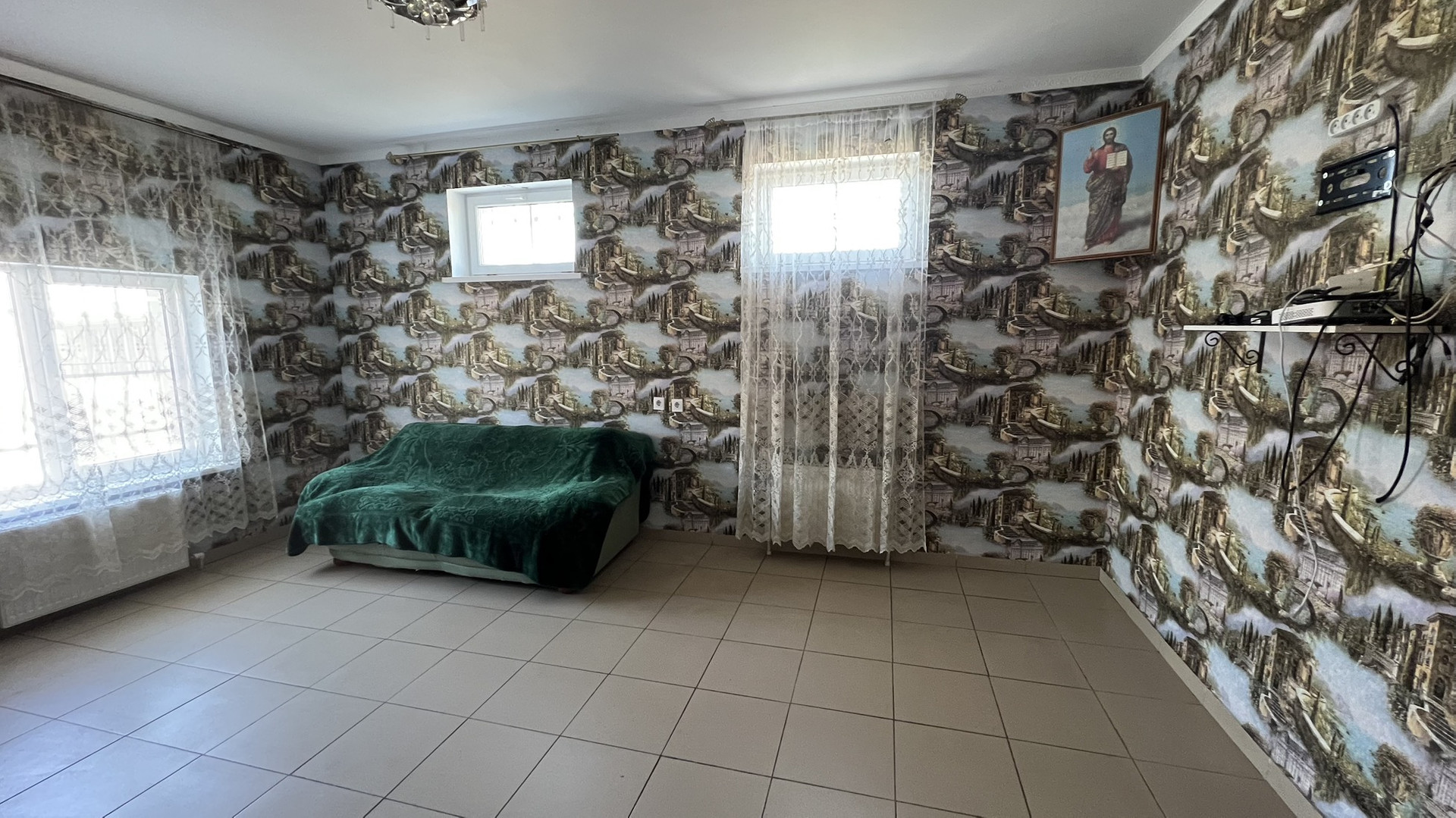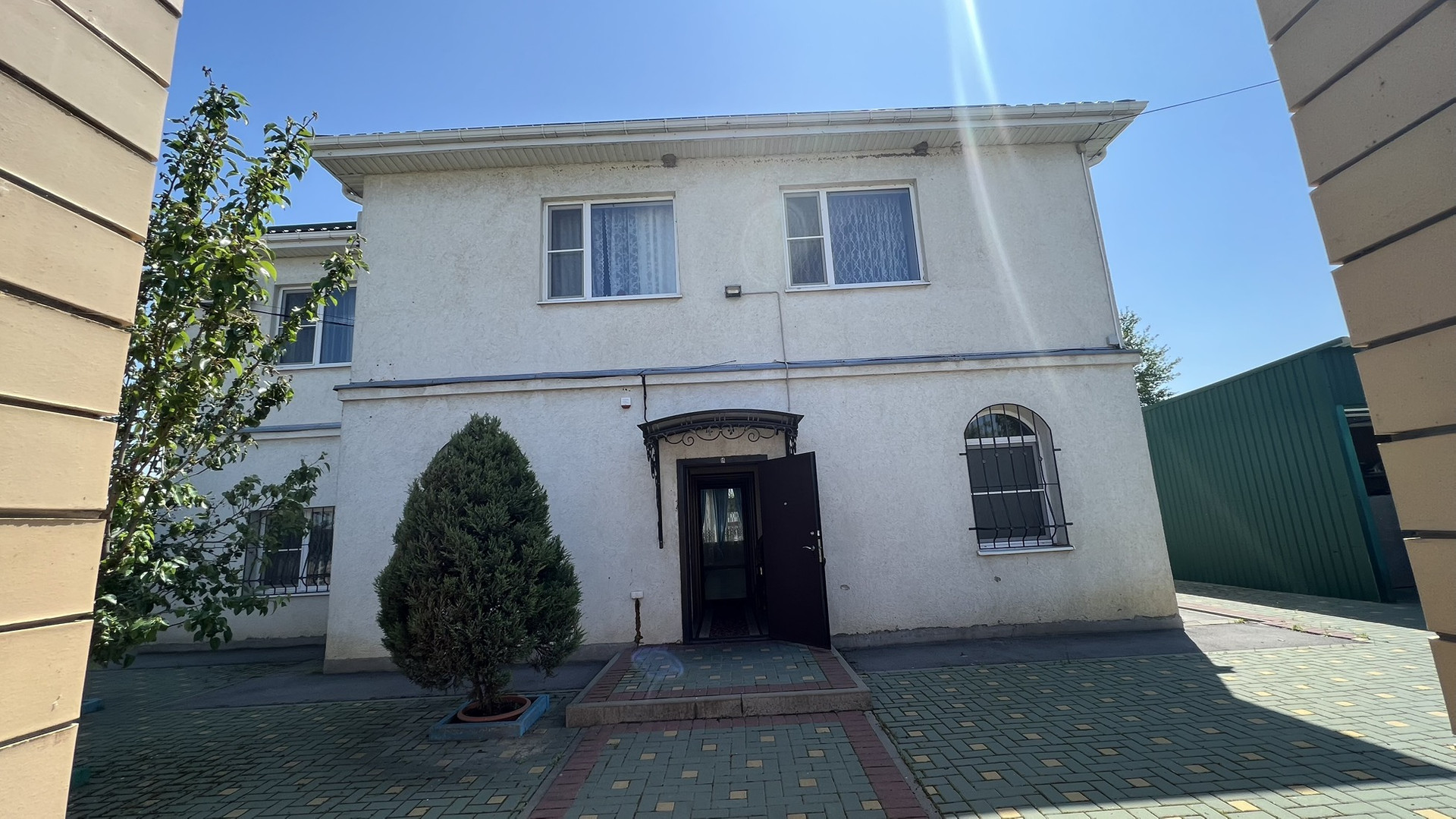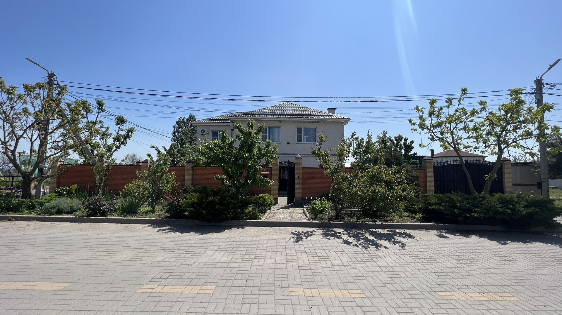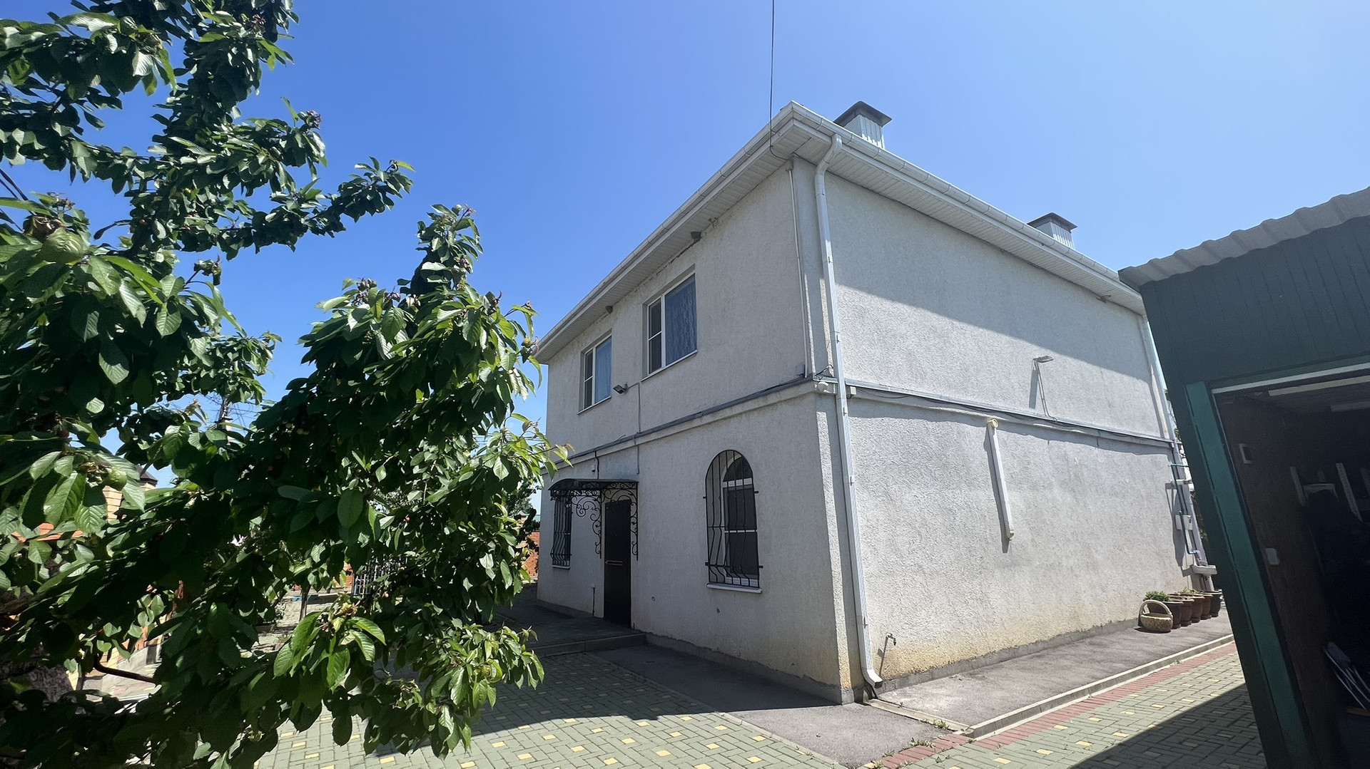 Дом решен в два жилых этажа. На первом этаже расположены просторная кухня, зал,  гостиная, спальня , санузел с душевой. Второй этаж занимают две спальные комнаты, зал с кухней, санузл с душем.Дом находится в идеальном состоянии,  а также укомплектован камерами видеонаблюдения снаружи дома. Установлена система фильтрации воды, а также дополнительный стабилизатор напряжения .  Размер земельного участка составляет 6 соток. На участке плодоносящий сад. Домовладение продаётся с мебелью, техникой и оборудованием целиком.