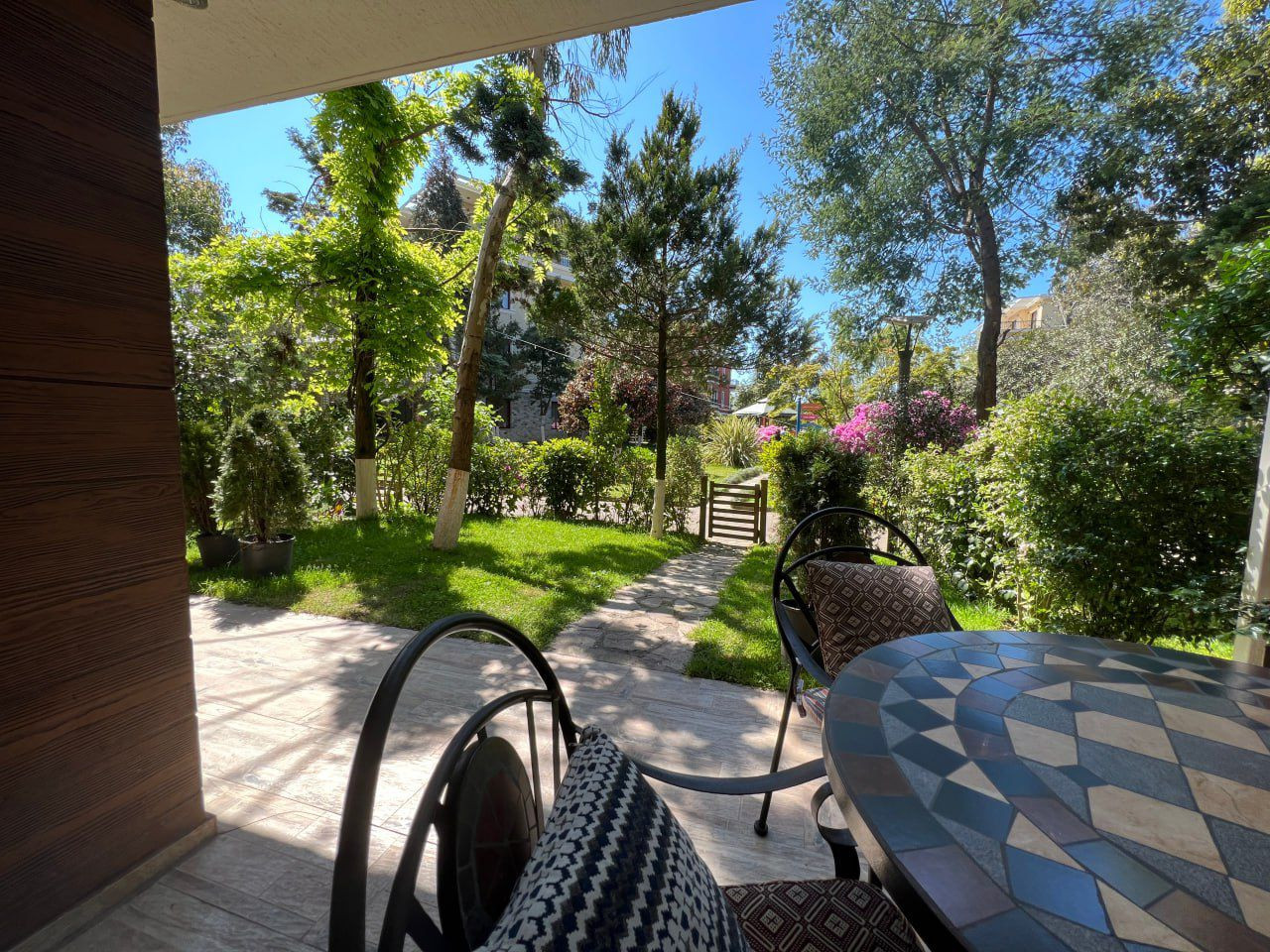 Дом строили из качественных материалов для себя. Деревья насаживали уже готовыми,ландшафтный дизайн,ухаживает садовник.