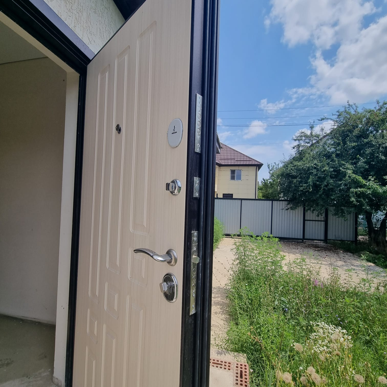 Качественная тяжелая входная дверь.
