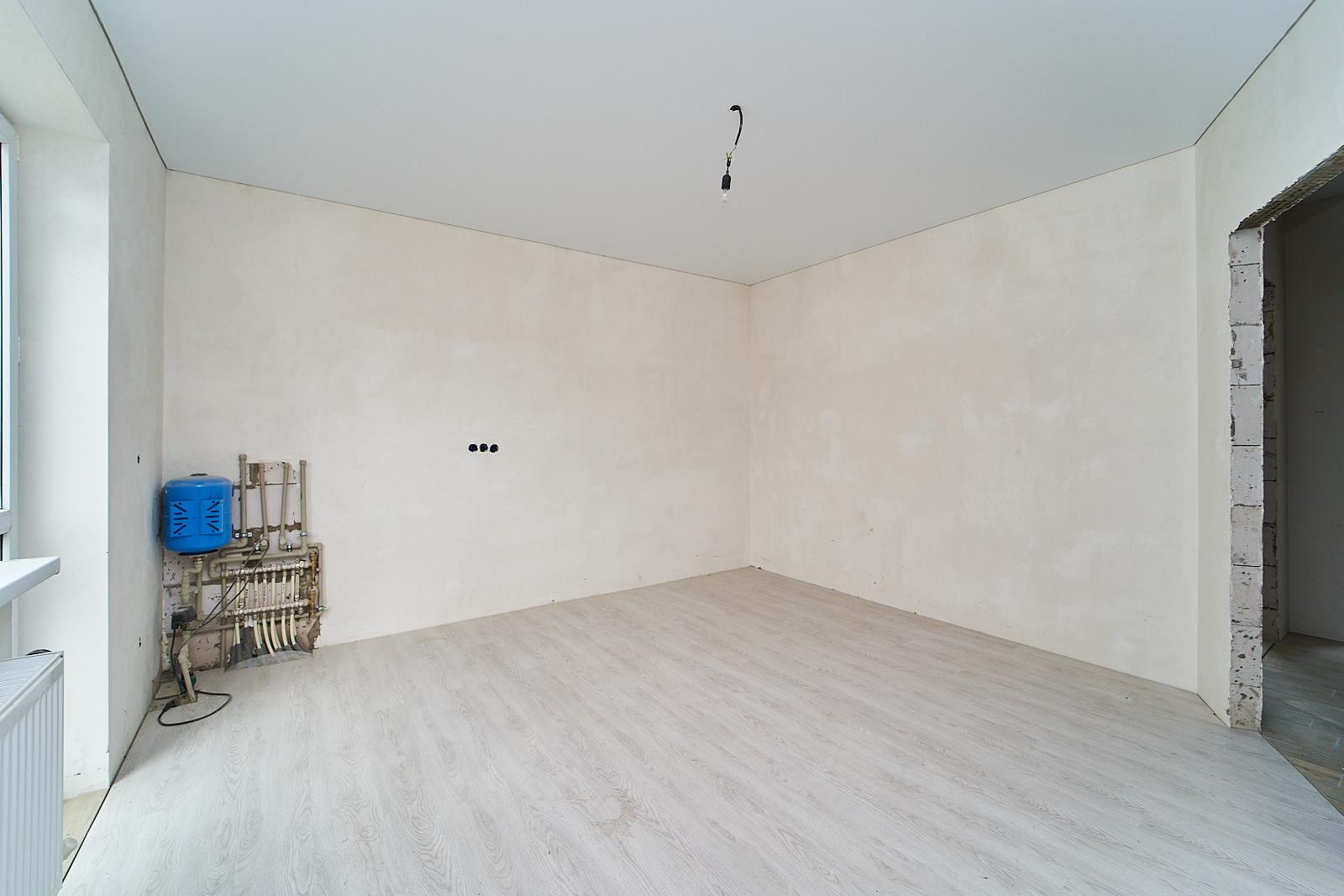 В санузле и прихожей теплый пол и плитка. В комнатах на полу ламинат, натяжные потолки, стены подготовлены под обои, Установлен 2х контурный газовый котел , сделана разводка отопления по дому, установлены радиаторы отопления. Электричество 15Квт. заведено в дом и подключено, установлен счетчик.