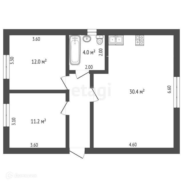 Общая площадь 59.2 м2