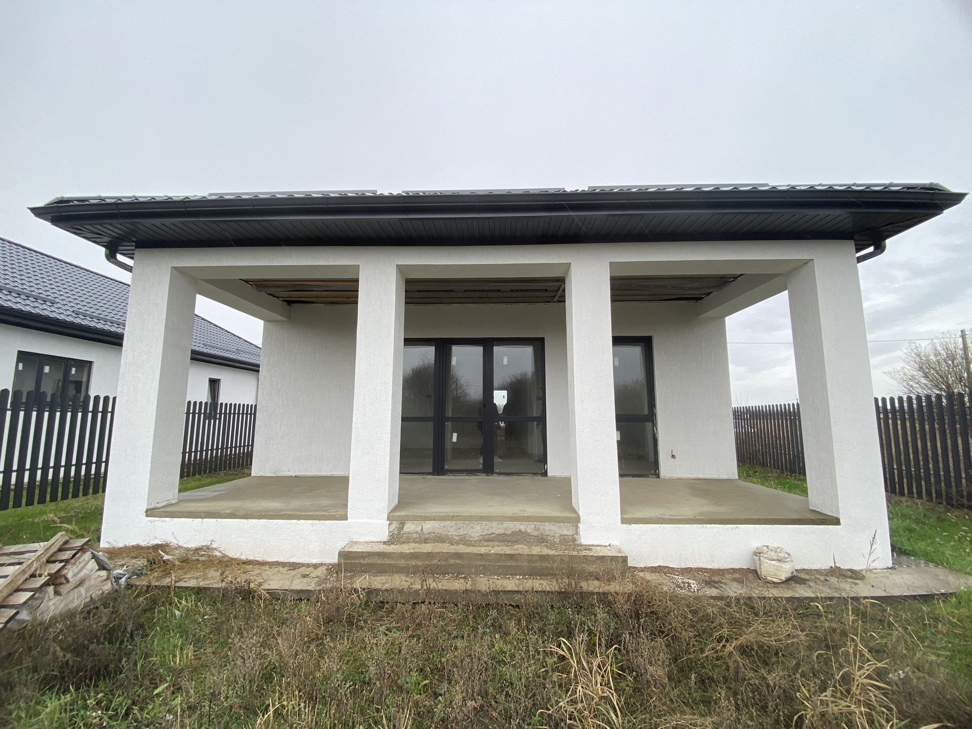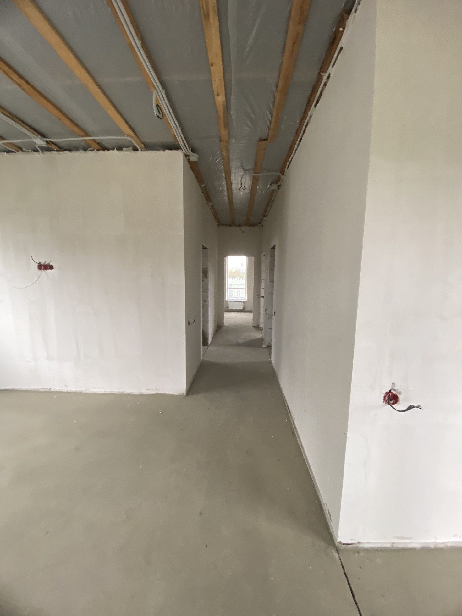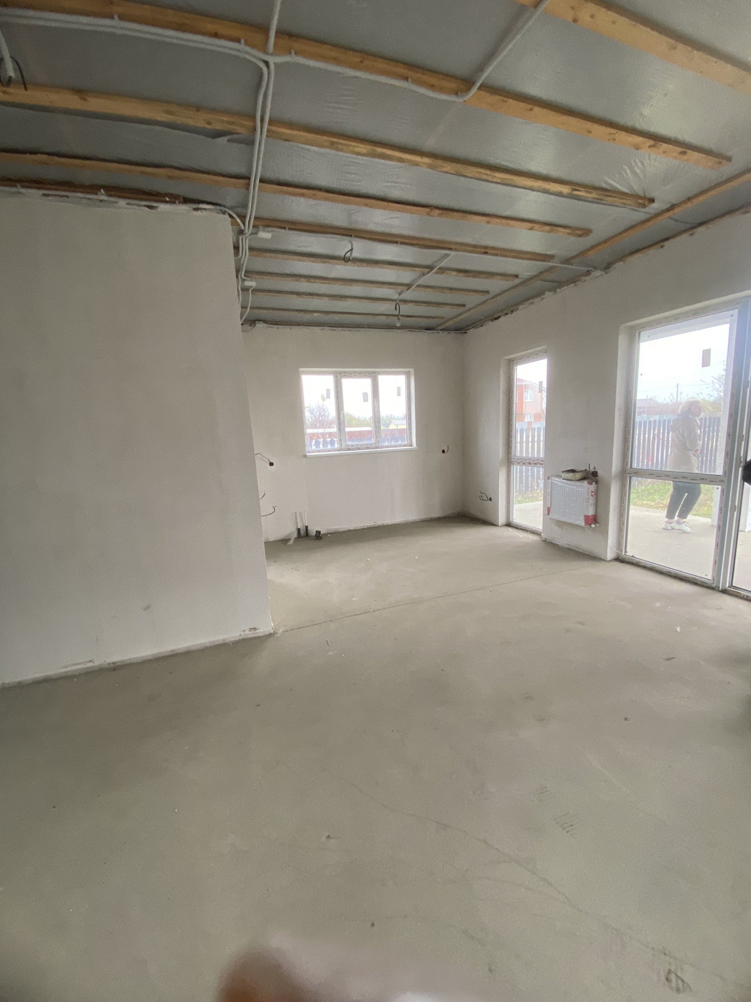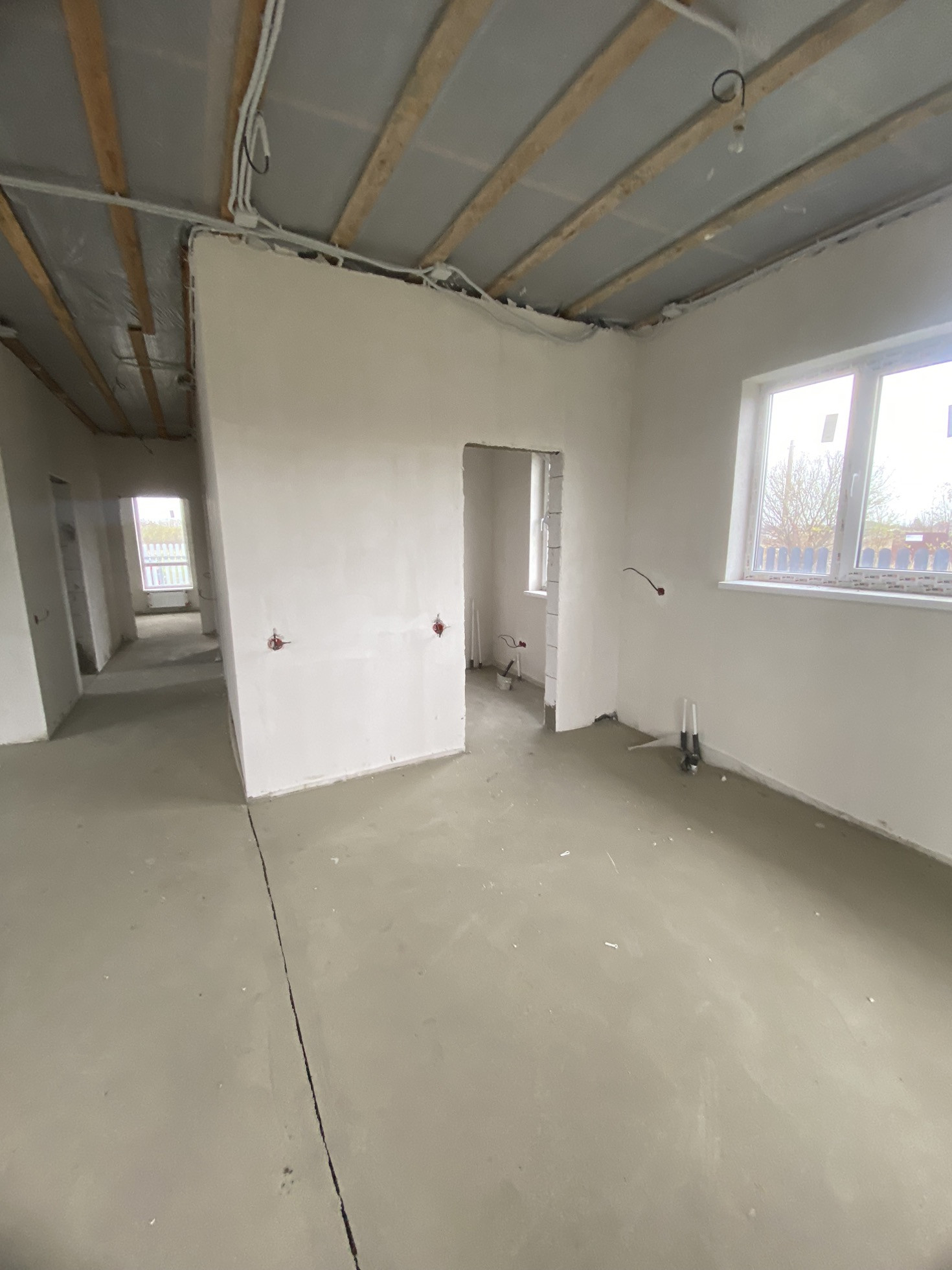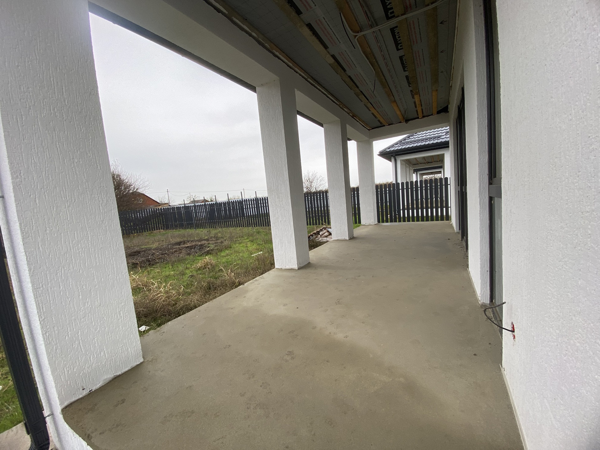 Большая придомовая территория, 2 машино места, отлита отмостка, большая терасса. Потолок утеплен, теплый пол, механическая стяжка Пола, стены под покраску, по вашему желанию подключим газгольдер.