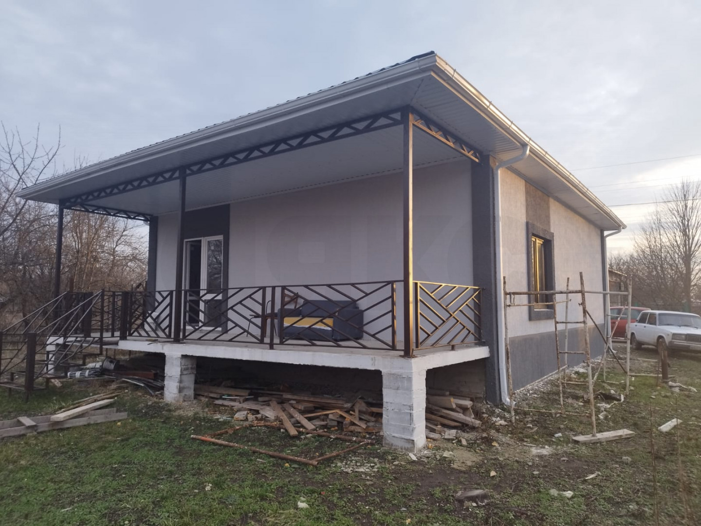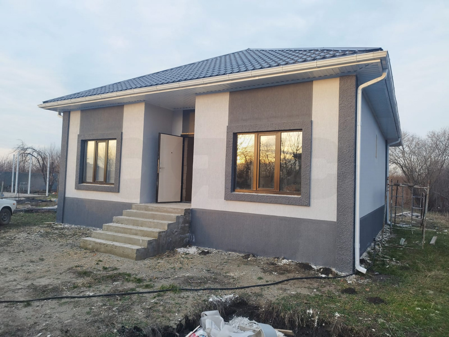 Дом новый, сдаётся с качественной предчистовой отделкой, забором и всеми коммуникациями. Газ у соседей, септк сделан, вода сделана, электричество подключено.