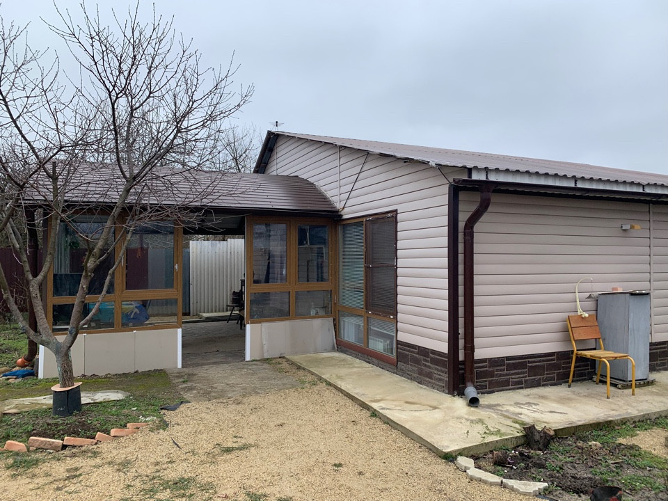 В планировке дома две отдельные большие комнаты 18 + 12м2, большая гардеробная комната 9м2, санузел-душевая 5м2, просторная кухня 15м2 полностью оборудованная, прихожая 8м2. При выходе из дома установлен навес, можно комфортно провести время на свежем воздухе в любую погоду. Двор уложен плиткой.