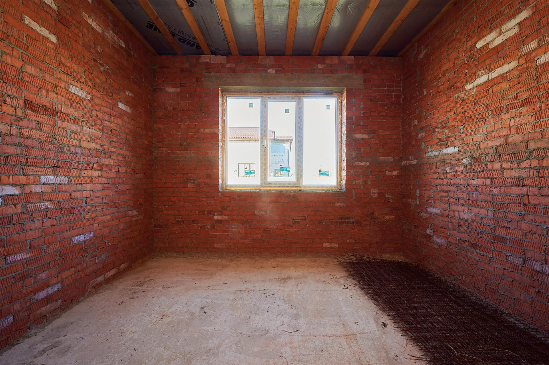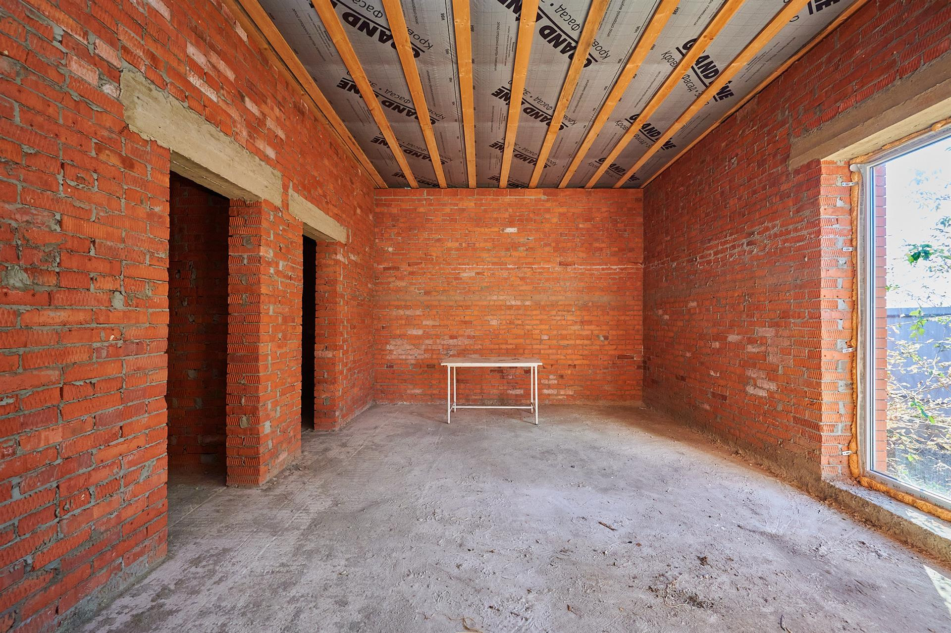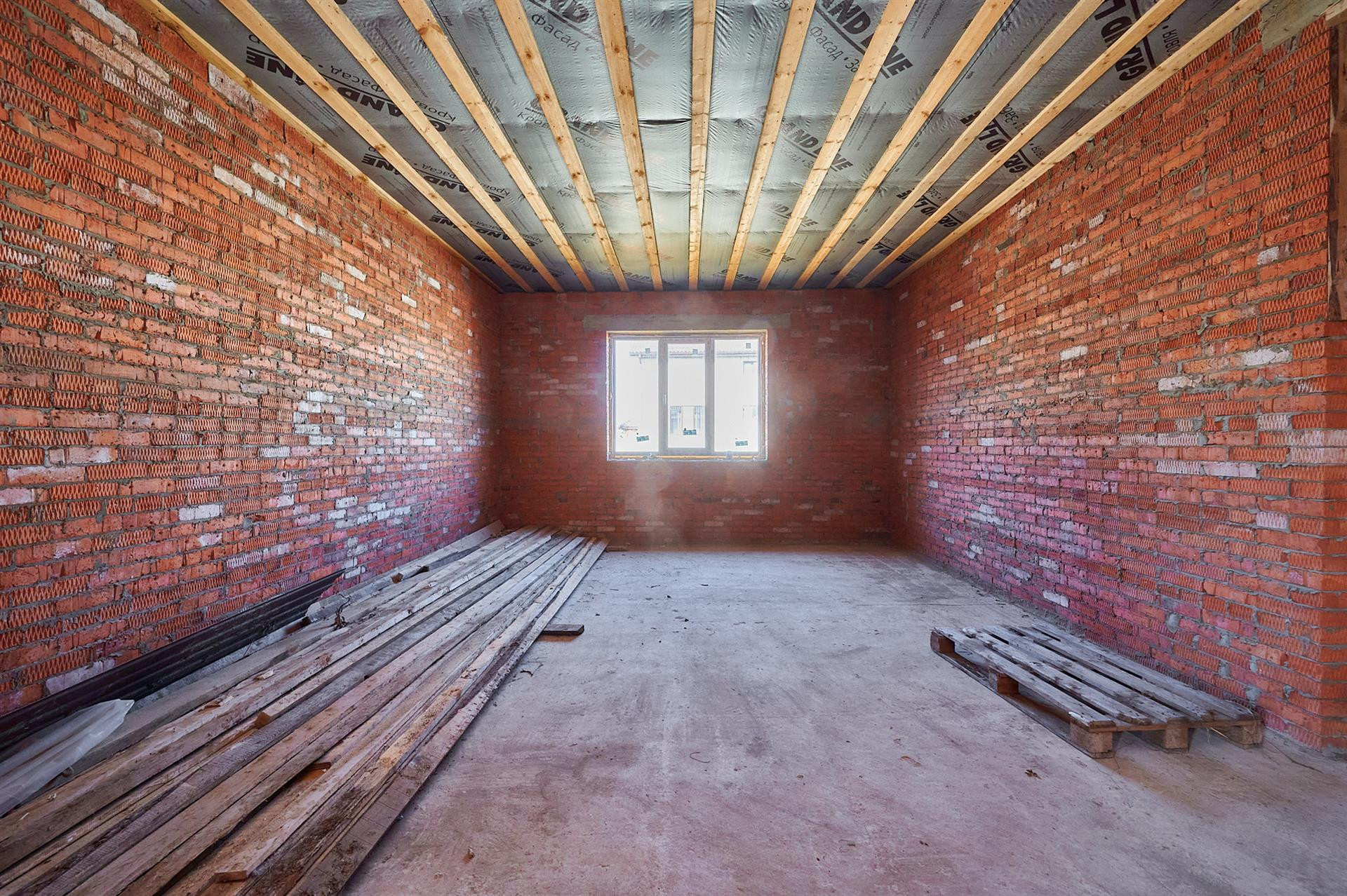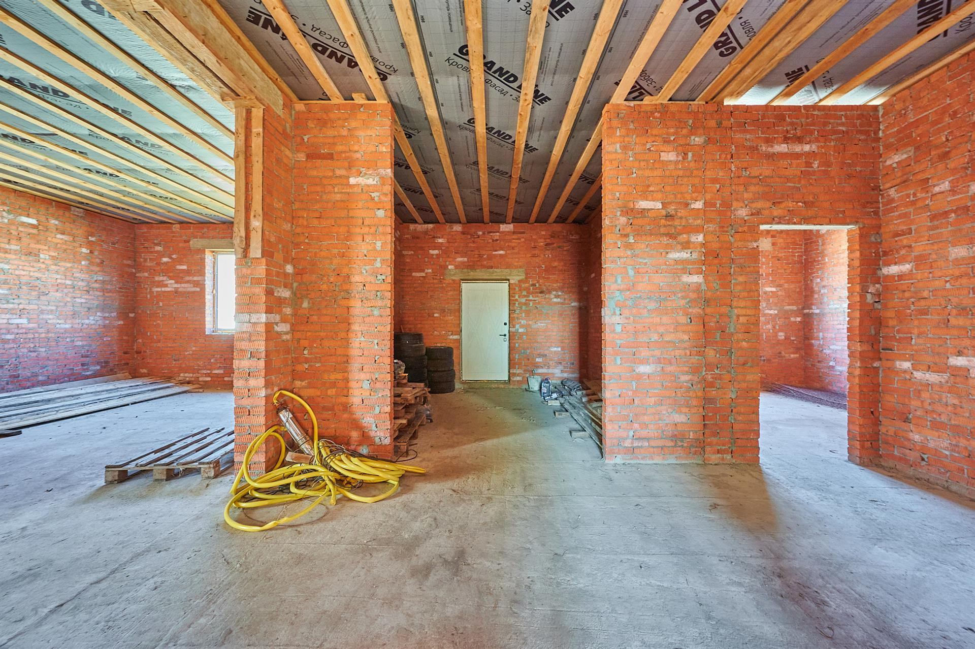 Фундамент состоит из двух уровней монолитных ФБС-блоков, на них лежит армированная бетонная плита 26 сантиметров. При строительстве использовалась арматура 14-го диаметра. Дом состоит из полутра кирпичей, кирпич кладки и облицовка Итальянцем. Что дарит сам дарит самую лучшую звуковую и температурную изоляцию. Летом прохладно, зимой тепло.