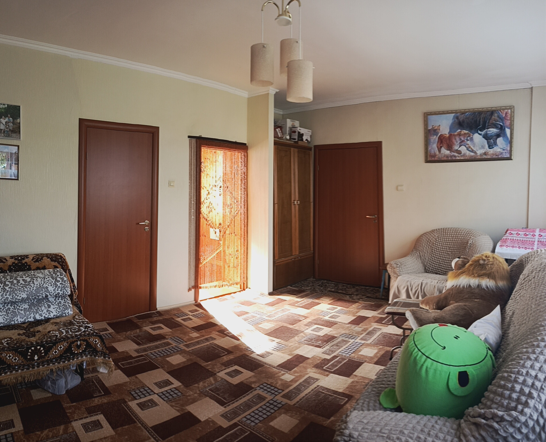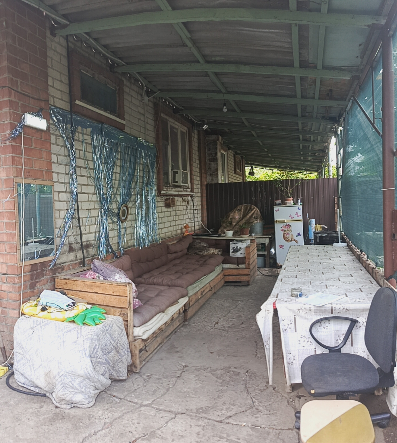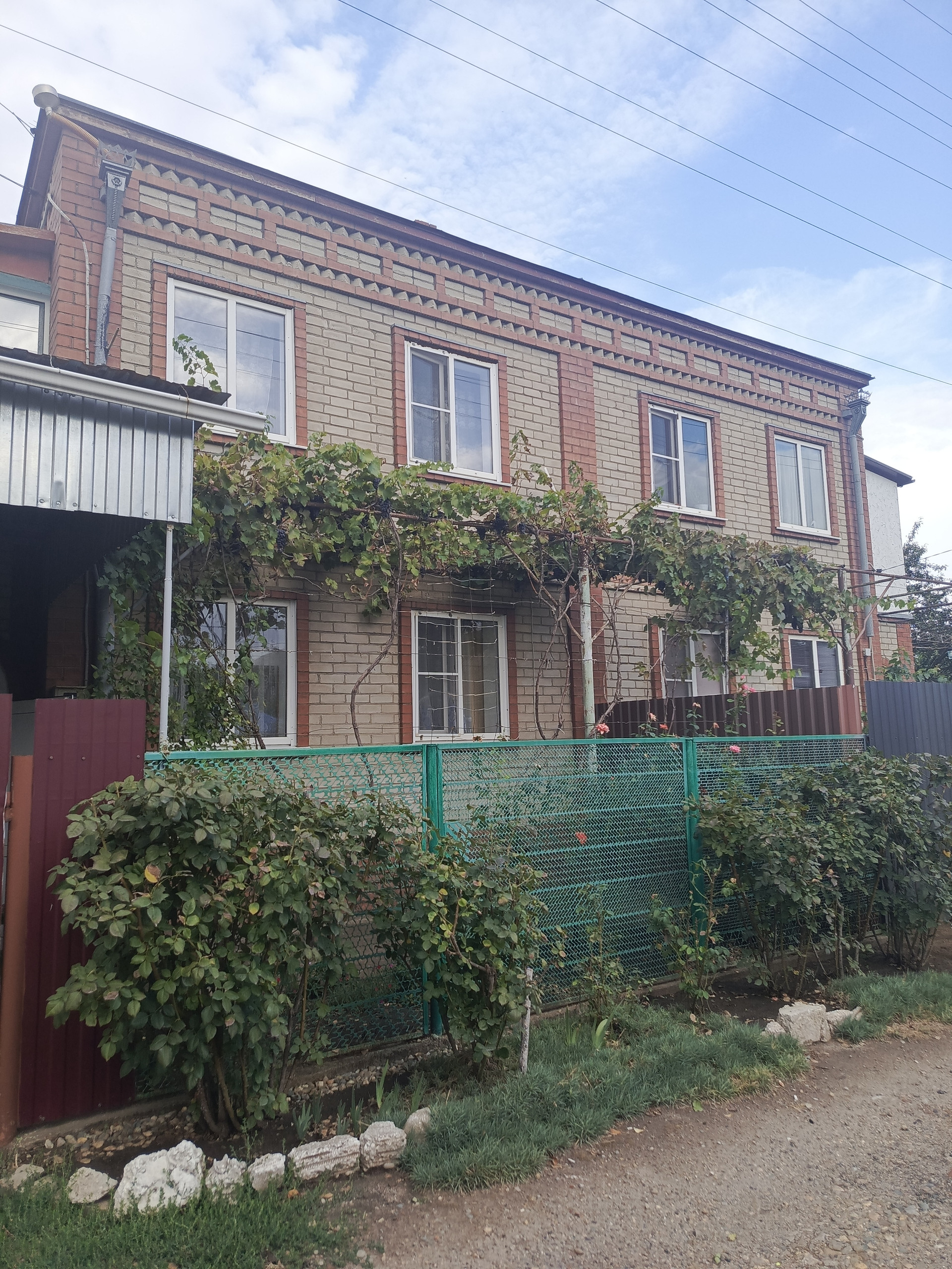 Продается огромный дуплекс для большой и дружной семьи. Дуплекс - это два дома с общей стенкой. Два отдельных входа и заезда. Строили дом качественно, для себя. Полностью из кирпича. Стены очень толстые. В каждой половине своя кухня, с/у, отопление. Две скважины. Одна на 8 метров, вторая на 30 метров. Два септика. Два огромных подвала, под каждой половиной дома. Полностью гидроизолированные, не топит. В одной из половин есть большой балкон, во второй из него сделали комнату. В общем получается 7 комнат, 5 из которых изолированных. Кухни со свежим ремонтом - оставят встройку. 5 комнат с ремонтом. 2 комнаты под ремонт. Два котла, установленные в подвалах, работают как от электричества, так и от дров. Так же в одной из половин, установлена газовая колонка, работающая от баллонного газа, для горячей воды на кухне. Установлены фильтры на воду. В одной из половин заезд для двух машин, крытый, во второй половине, не крытый. Две беседки. Баня. Много свободной земли. Участок удачный, угловой. Очень много плодоносящих деревьев и кустарников - слива, груша, яблоня, клубника, малина, виноград, гранат и т.д.. Дополнительно, на каждой половине имеются уличные туалеты и душевые. Расположен наш дуплекс в тихом и уютном месте, при этом в 500 м. от остановки общественного транспорта и школьного автобуса. При въезде имеется продуктовый магазин. Газ тянут. Все налоги и взносы оплачены. Нет обременений. Показ 24/7 по предварительной договоренности. Продажа без дополнительных % с вашей стороны. Торг возможен при просмотре. Есть возможность купить отдельно, любую из половин. Два собственника. Оба совершеннолетние. Звоните, расскажу подробнее.