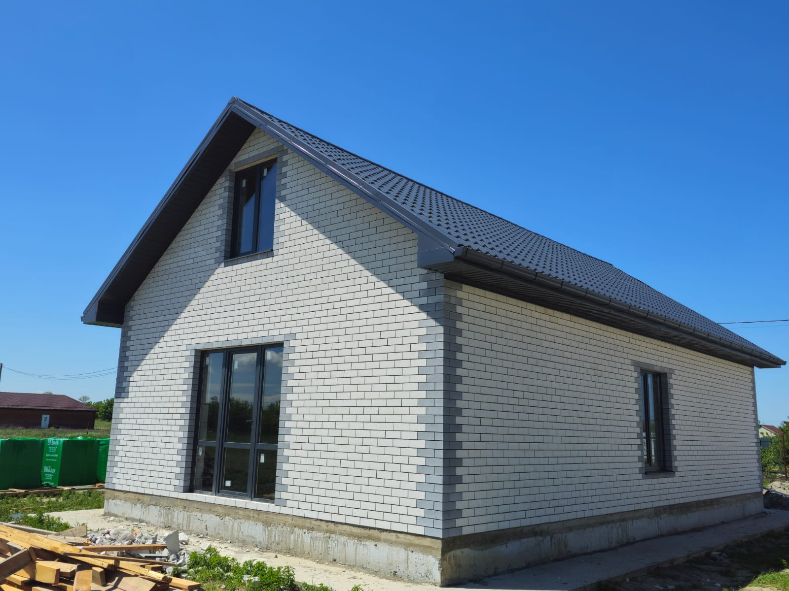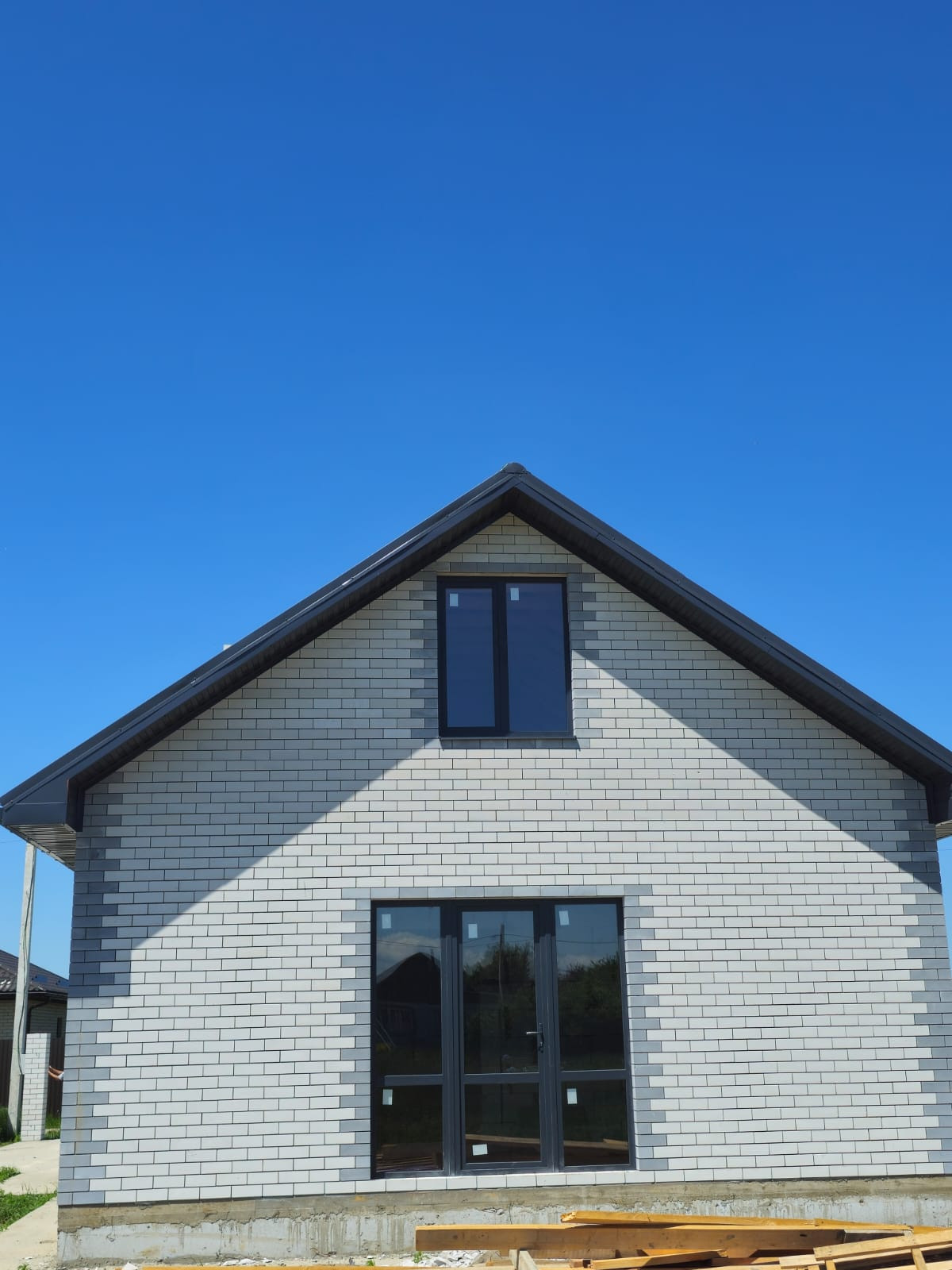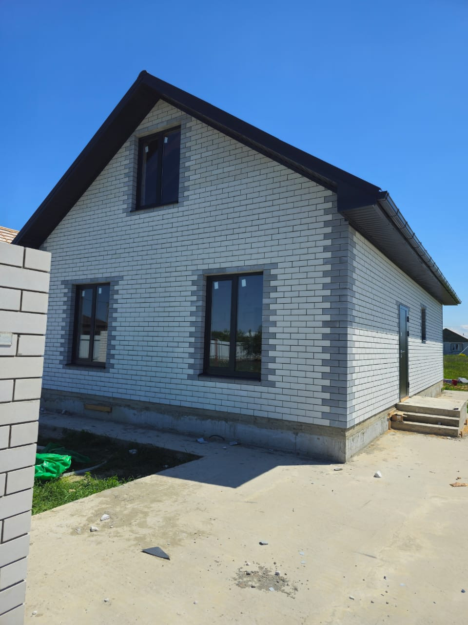 * Забор графит и кирпич по фасаду.