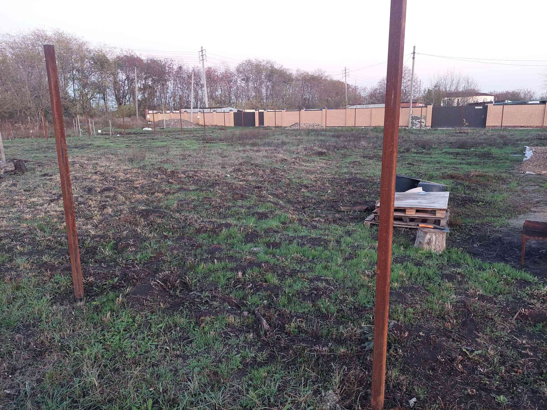 чистый участок, вспахан весной . столбы по периметру 60/60. есть соседи. электричество подключено.