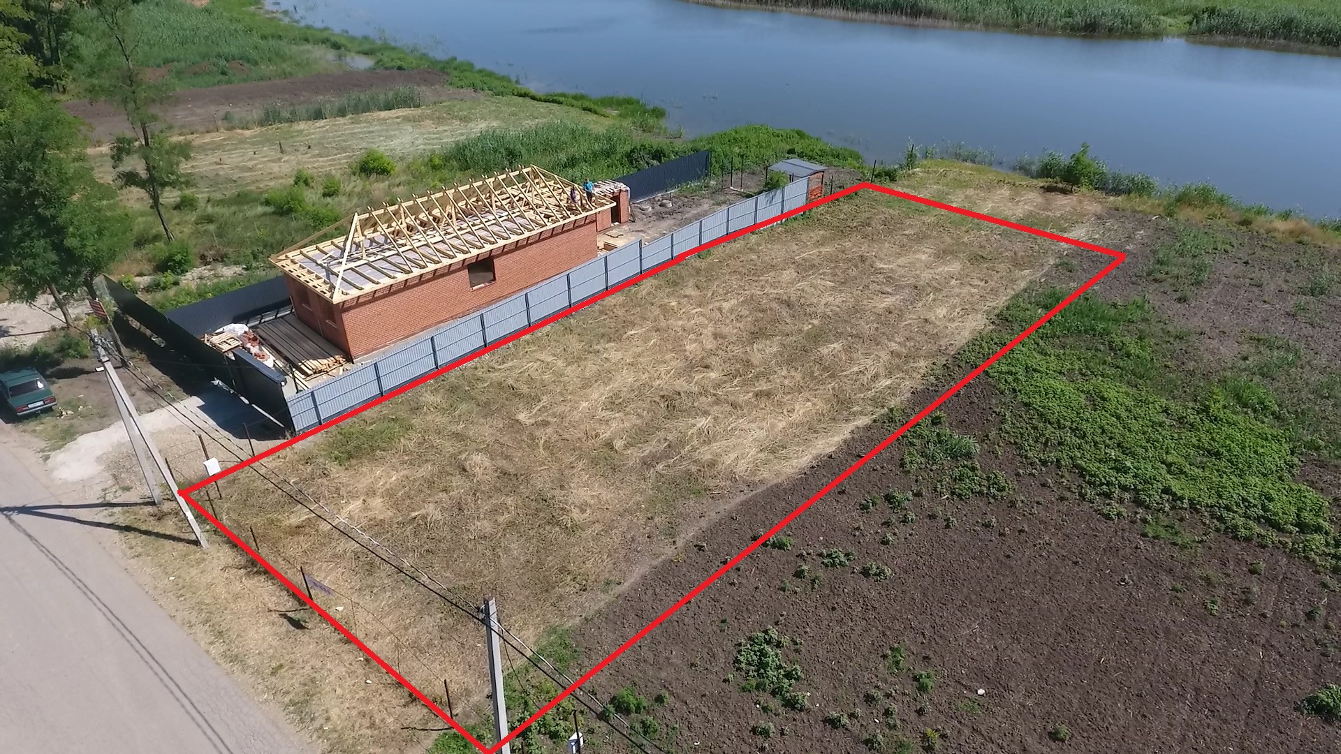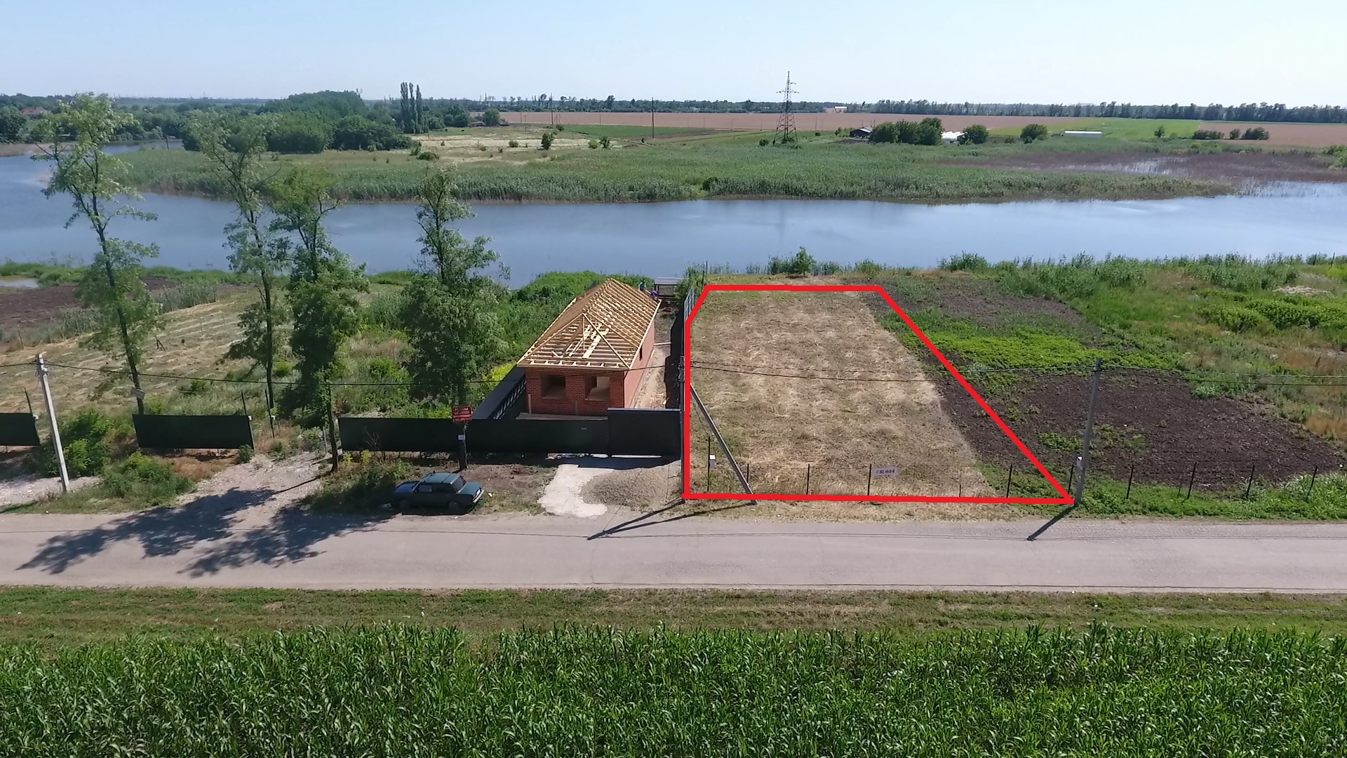 Участок огорожен, фасад 19м, электричество 15 кВт уже на участке.