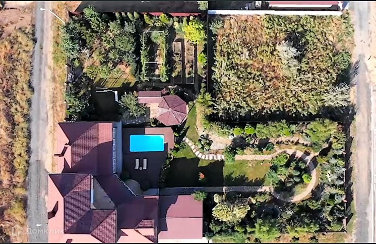 Ландшафтный дизайн разработан с использованием технологий для илистых и песчаных почв. Весь участок разделен на три зоны: фруктовый сад и французский огород (молодые деревья и кустарники 5-ти лет, все плодоносят) виноградник элитных сортов, ягодник; парковая зона, тут высажены хвойные и лиственные деревья, скамейки и маленький пруд; зона отдыха с бассейном, барбекю с беседкой. Парковка для двух машин под навесом.