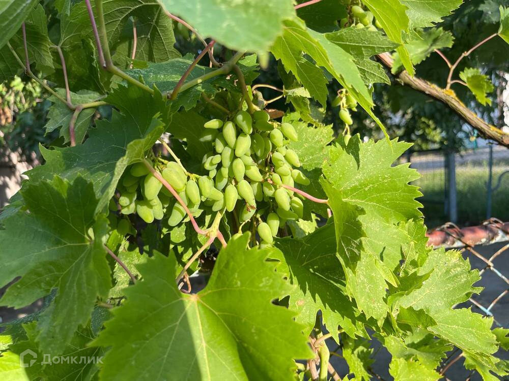 Ухоженный огород и сад с плодоносящими деревьями. Насаждения винограда.