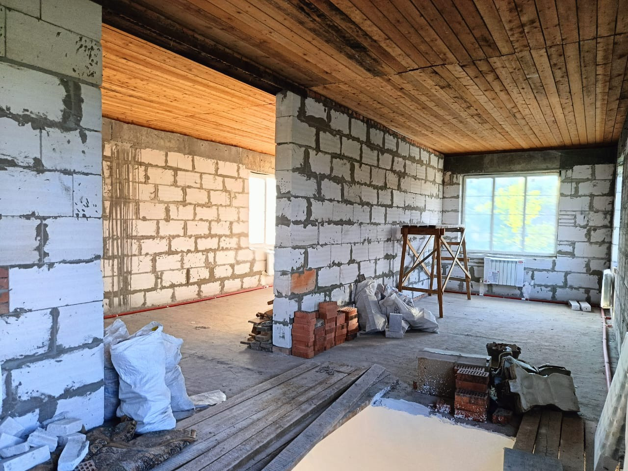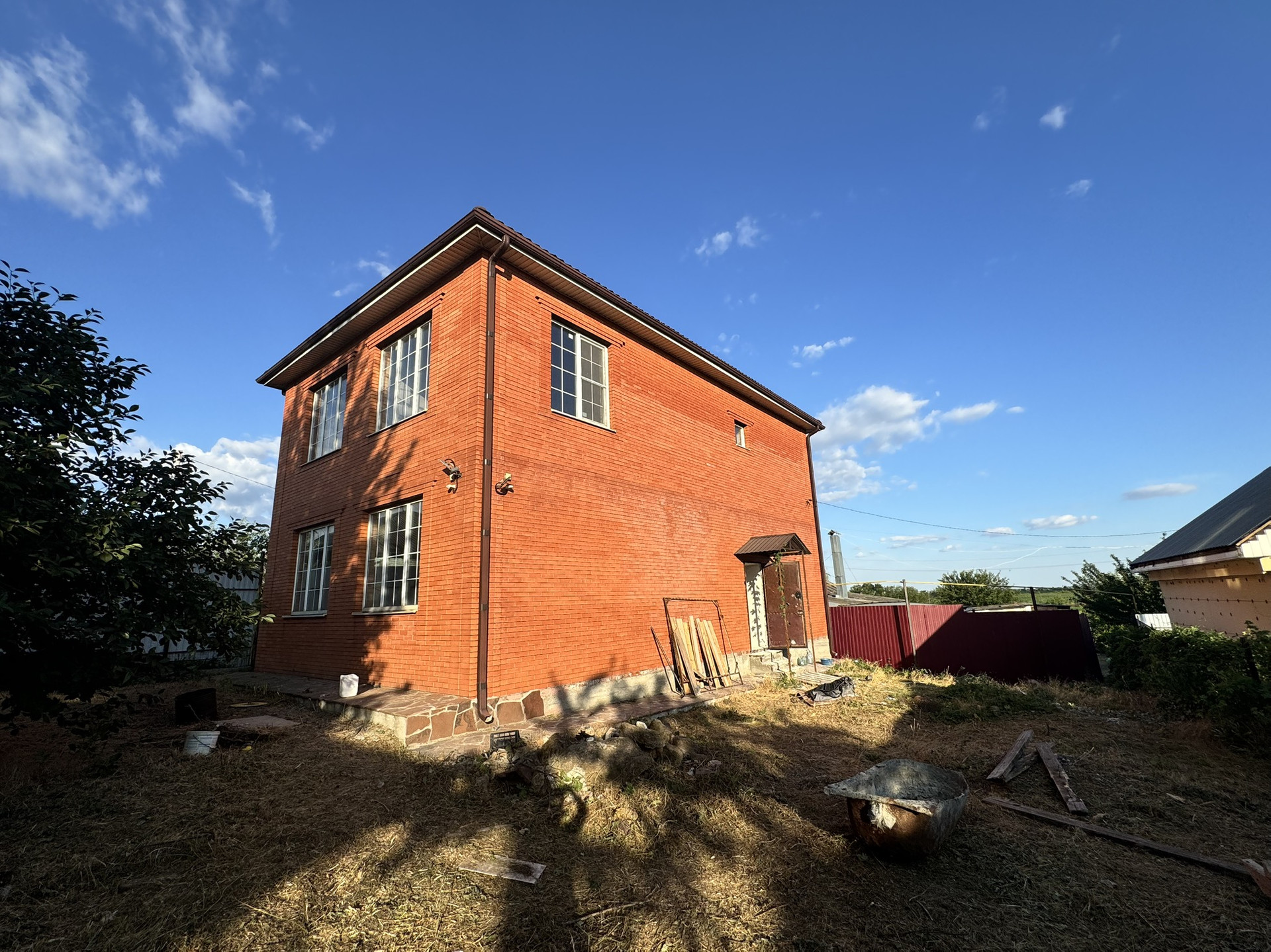 Продается новый кирпичный дом, с частичной отделкой. На первом этаже выполнена электро разводка, штукатурка, стяжка, разводка воды, батареи, установлен котел, высота потолков 3,5 м, второй эт без отделки, имеется сухой подвал. Во дворе имеется летний душ, туалет, кухня.