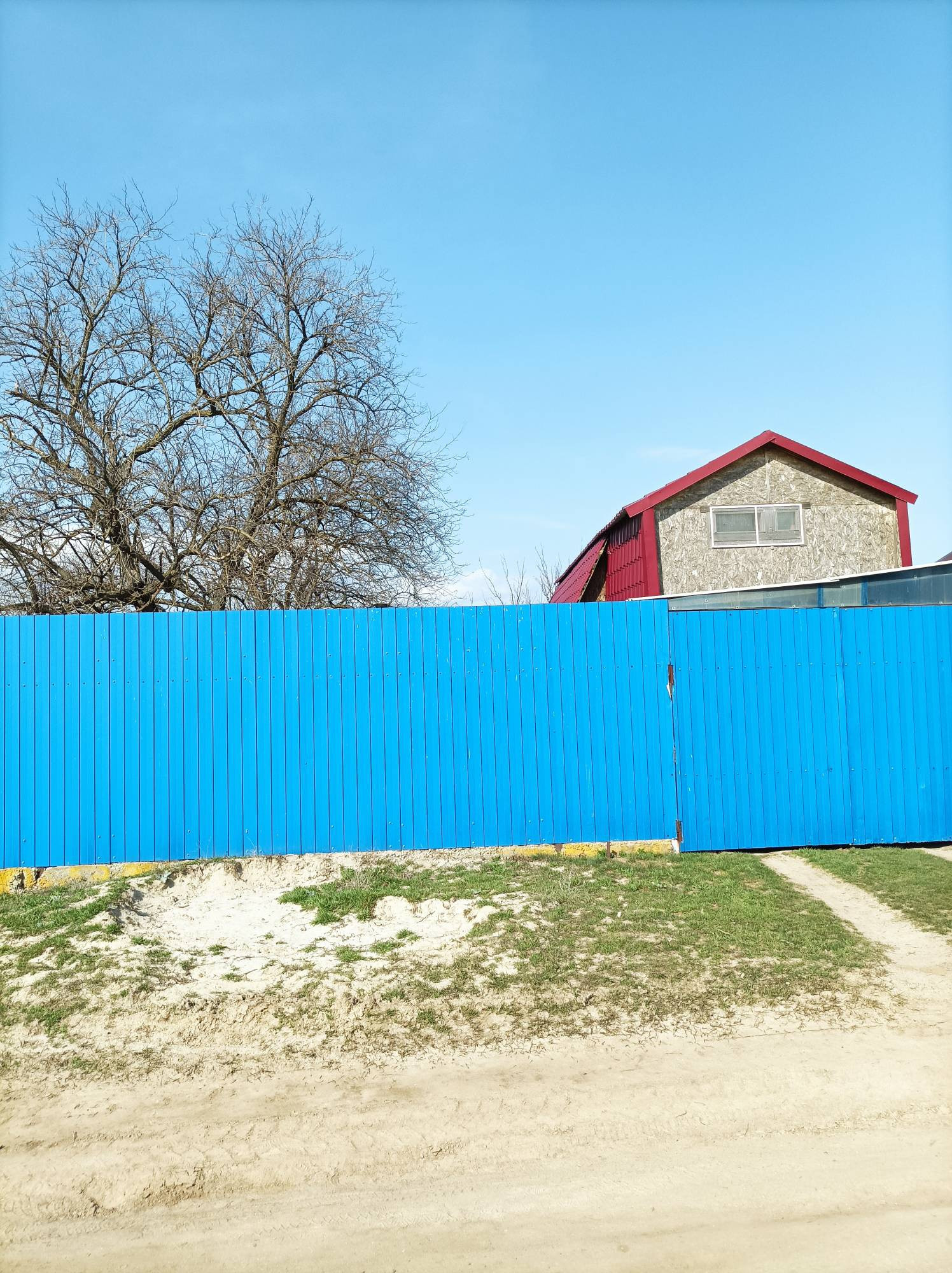 По всему периметру железный забор.