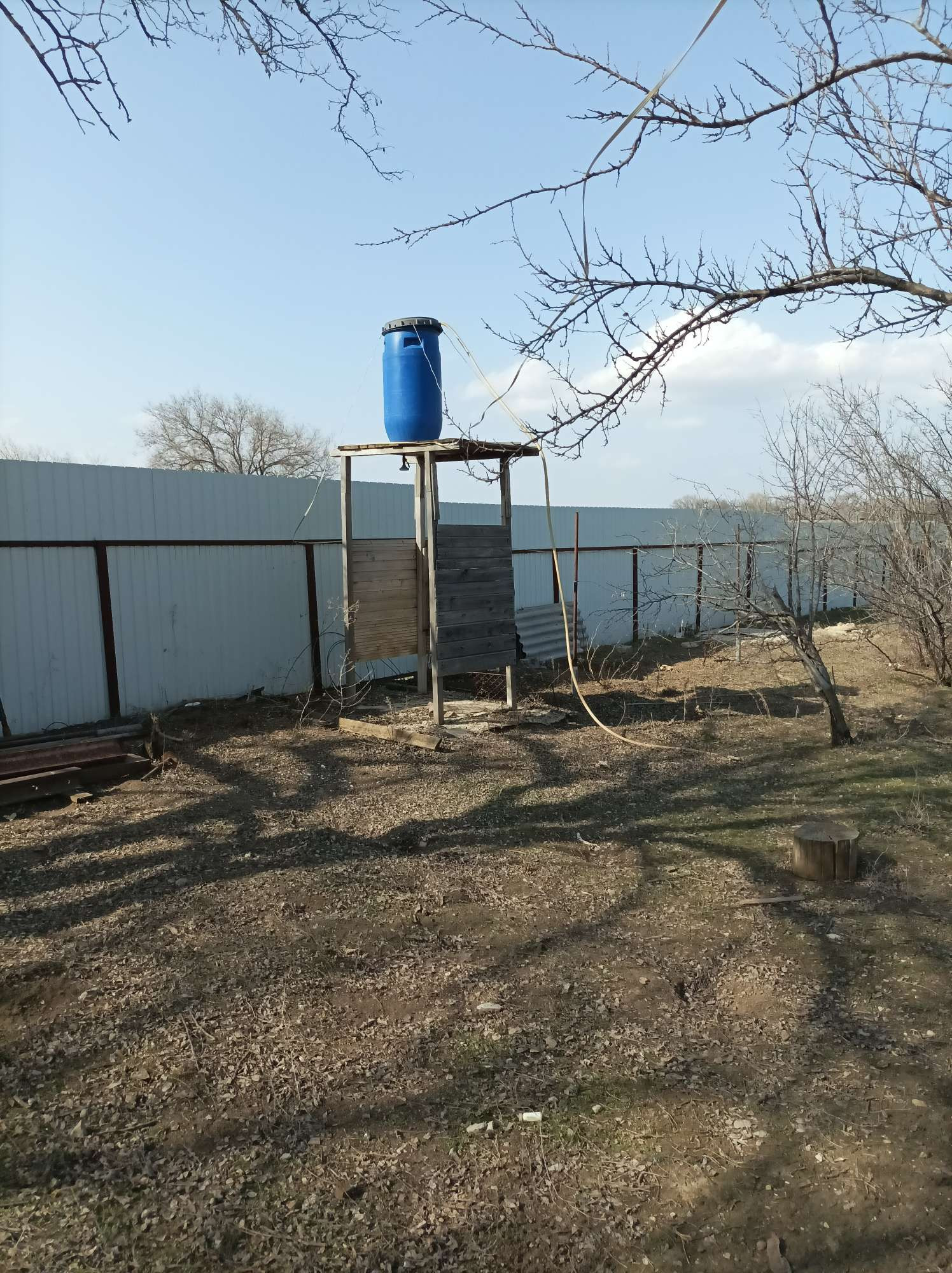 Септик. Туалет в доме. Есть баня и душ с горячей водой.
