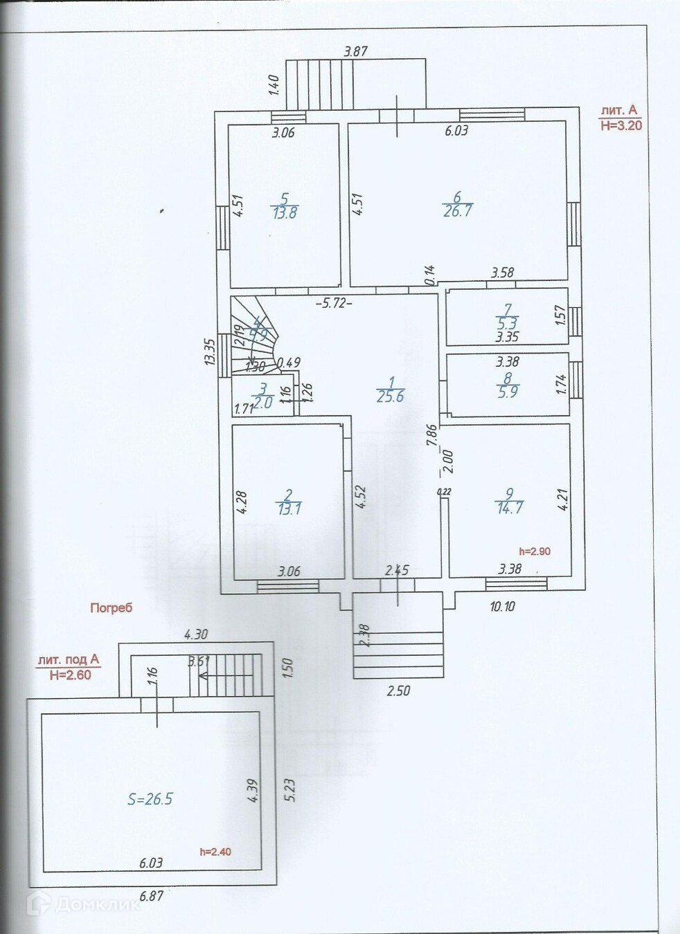 Имеется подвал — 26.5 кв.м.