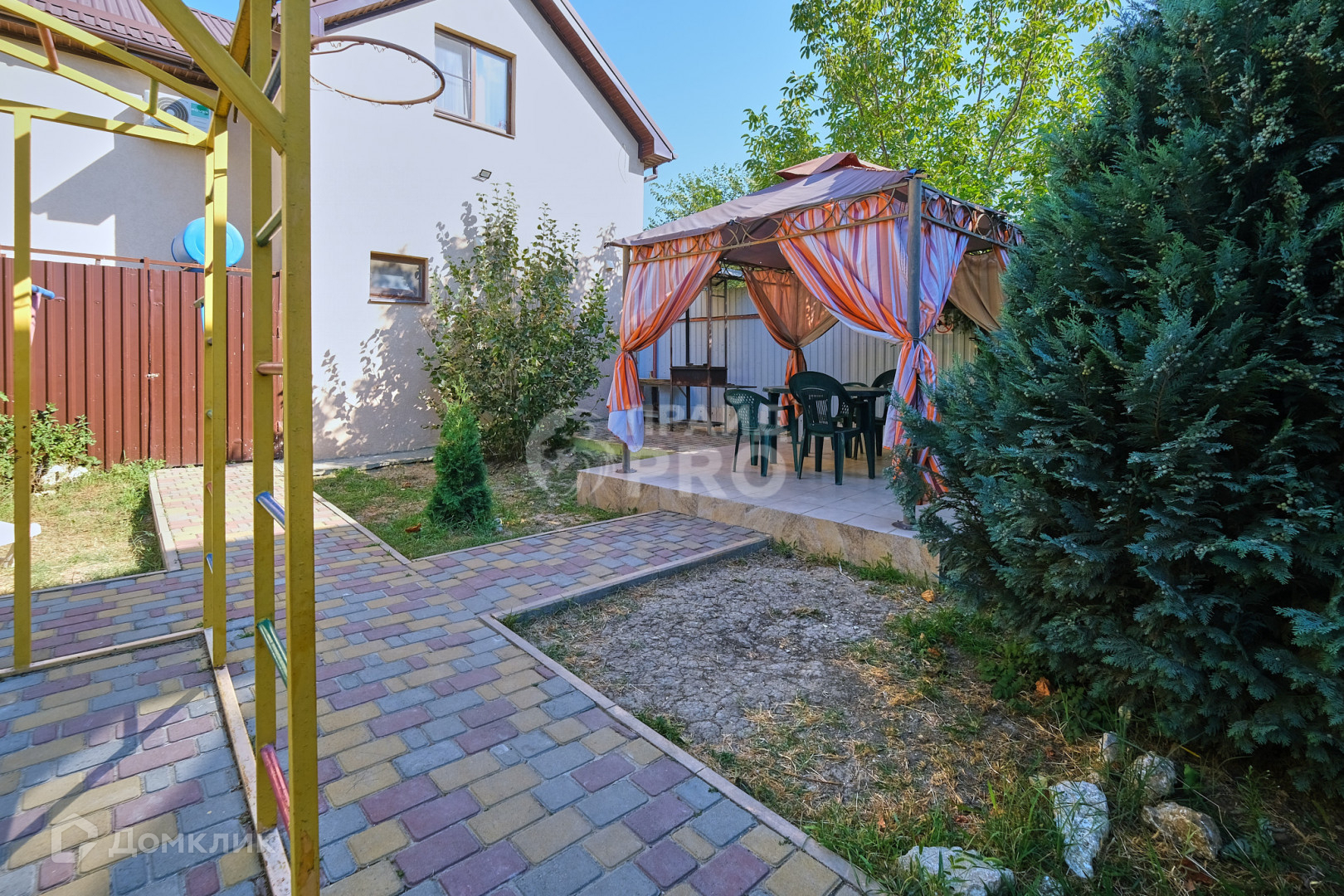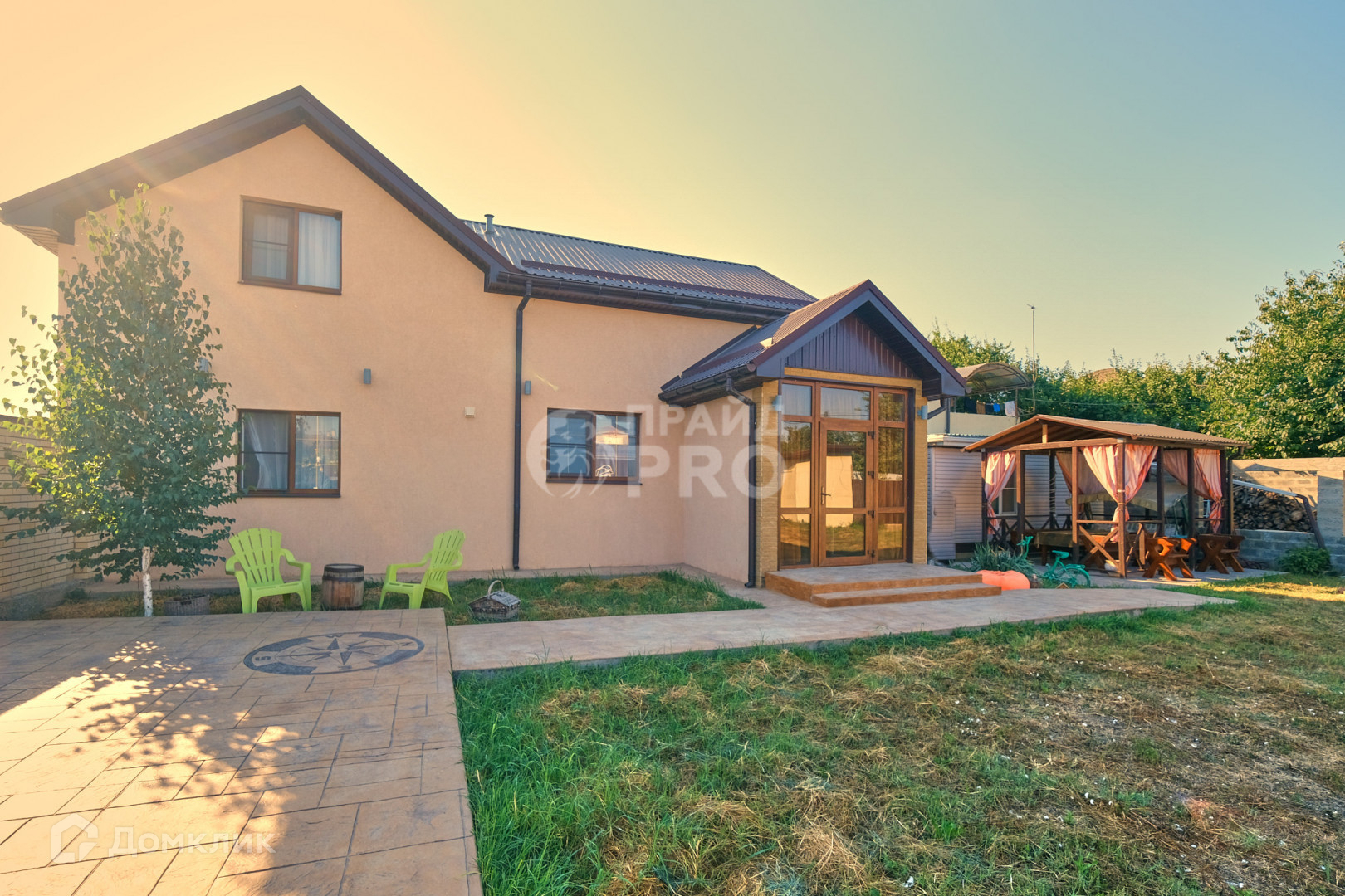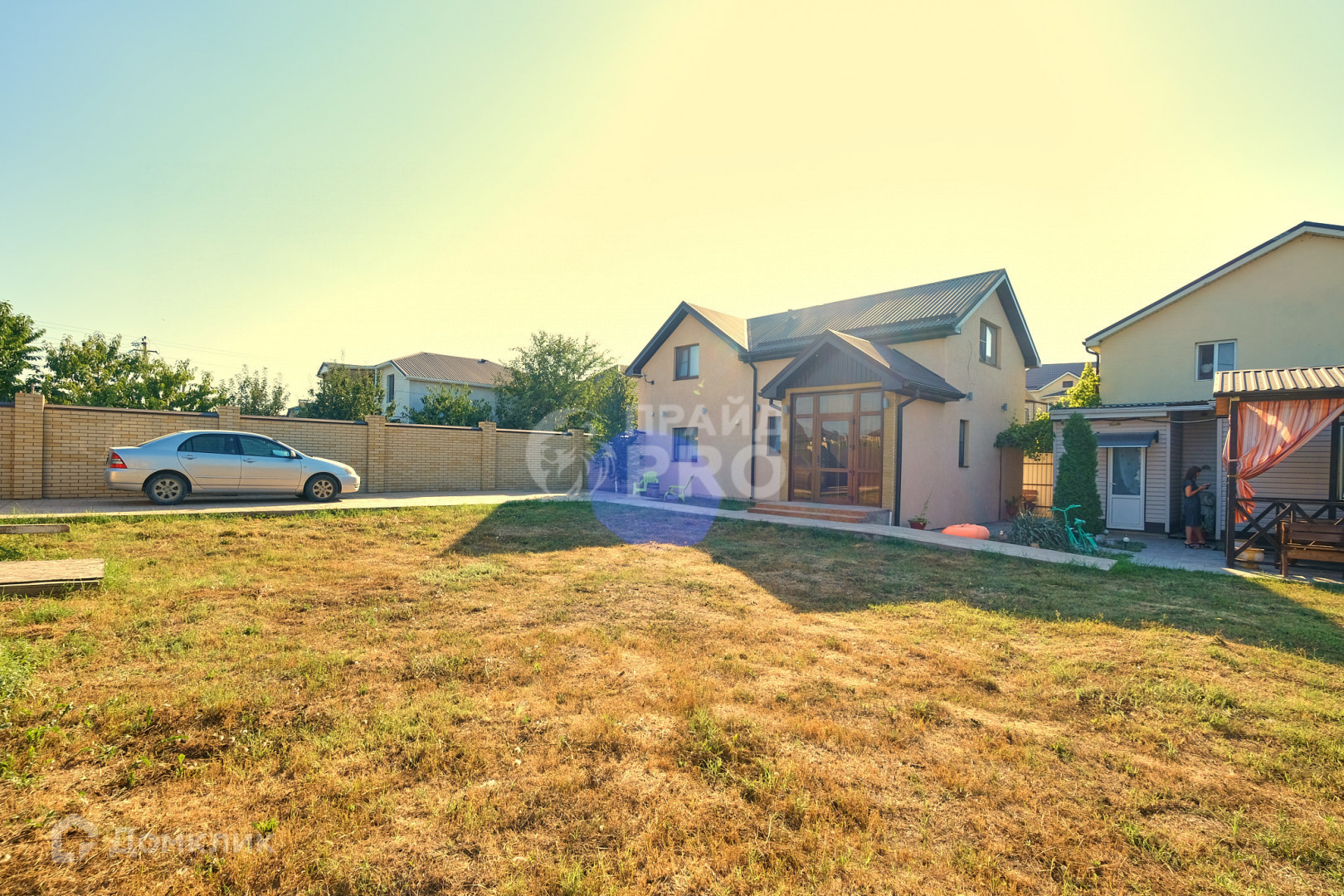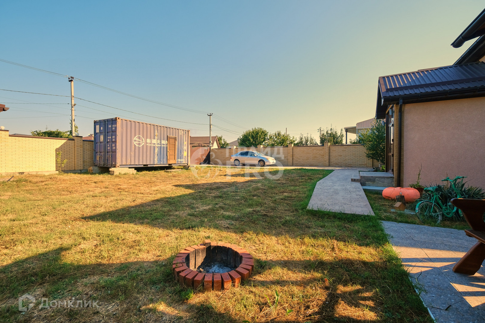 Дом для хозяев 2021 года постройки. Общая площадь 156 м2. Выполнено наружное декоративное освещение дома, установлены датчики на движение. Также вечернее освещение есть по всему периметру - на кирпичных колоннах ограждения. На хозяйской также есть беседка, недостроенном здание под барбекю, хозблок и 20-ти тонный контейнер. Он также входит в стоимость домовладения, при грамотном использовании может стать дополнительной зоной отдыха.