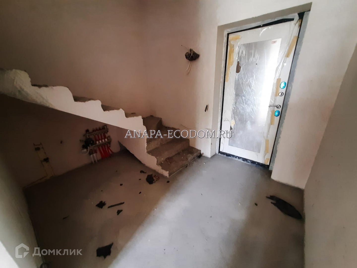Стены: с внутренней стороны отделка штукатуркой , готовые под покраску и обои, на 2-ой этаж ведет монолитная лестница