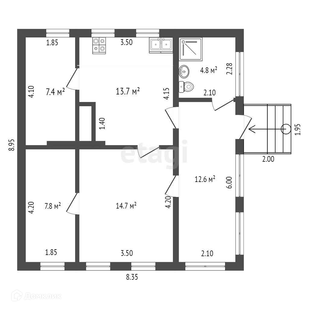 Площадь земельного участка 25 соток, общая площадь дома составляет 61,3 кв.м. В домовладении есть отдельная кухня с ванной, а также дополнительные хозяйственные постройки.