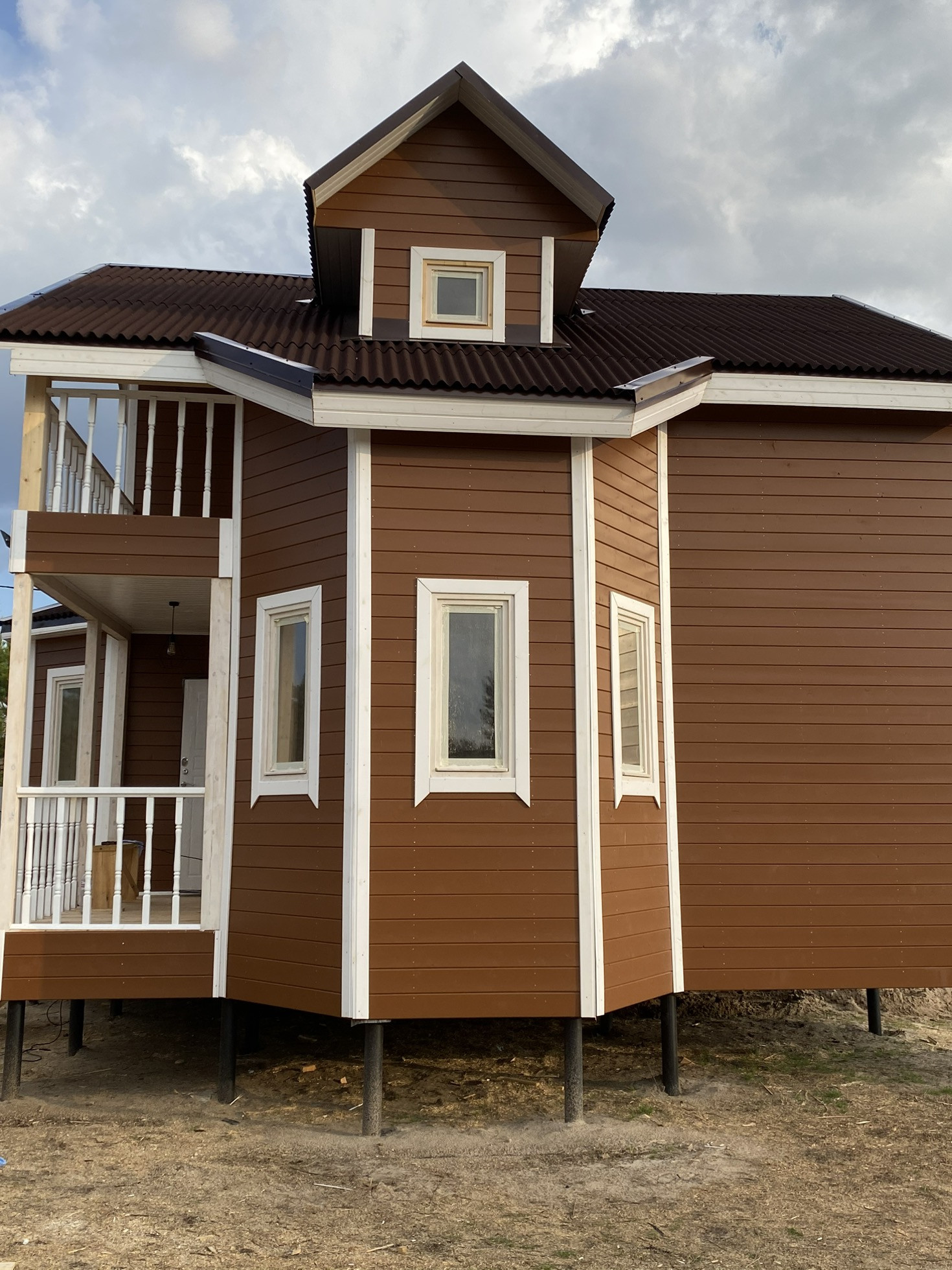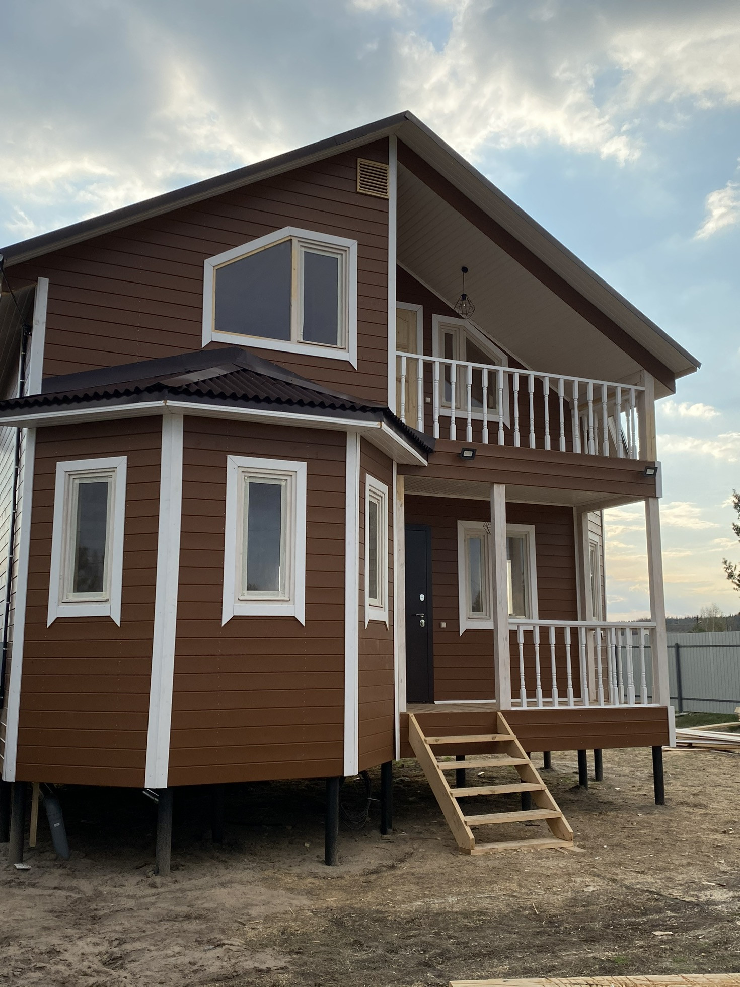Деревянный каркасный дом (общей площадью 100 кв. м.), изготовлен по финской технологии. Дом предназначен для круглогодичного проживания, полностью с чистовой отделкой. Все коммуникации подведены: свет, канализация, артезианская вода, в доме установлена автоматическая насосная станция.
