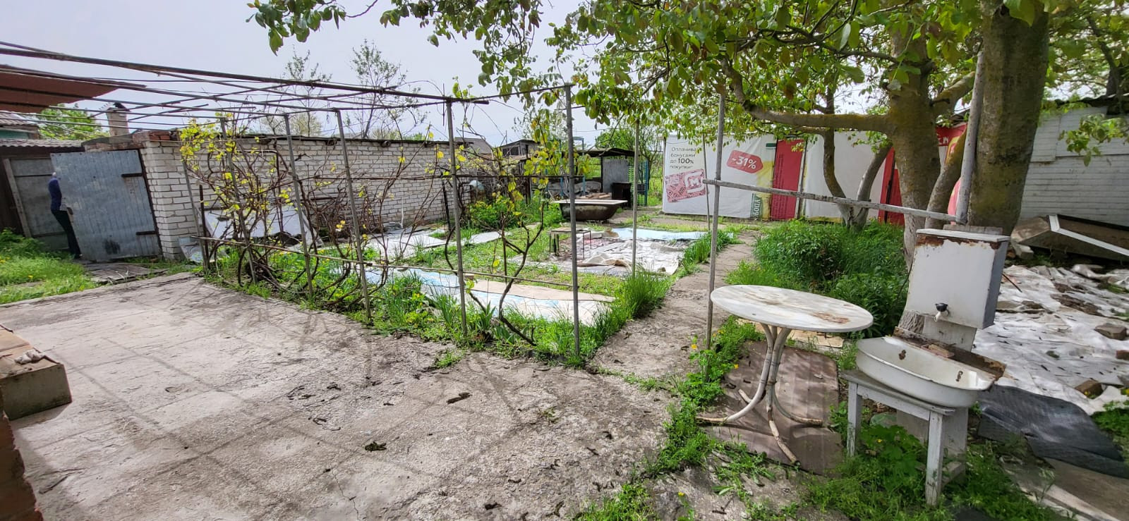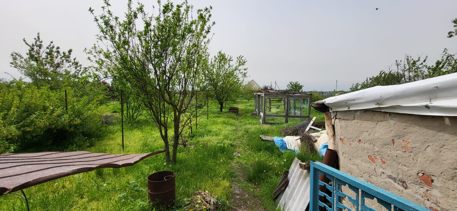 участок с фруктовыми деревьями, есть гараж и хоз постройки в прошлом году сделана крыша. хорошие соседи ! Возможен торг