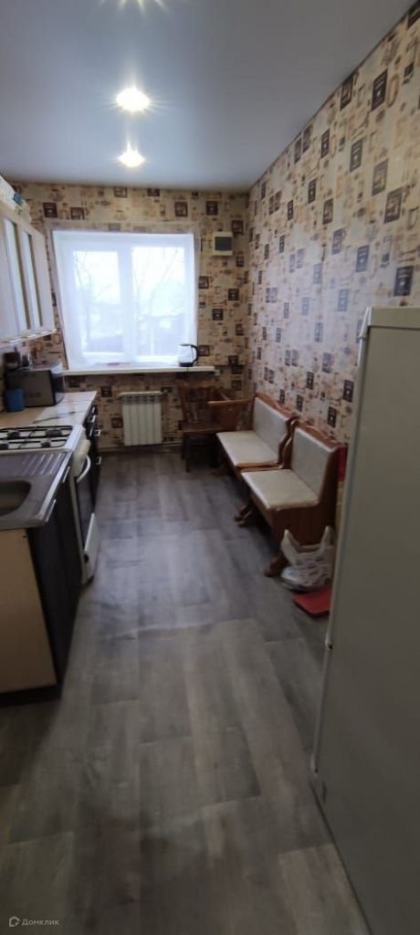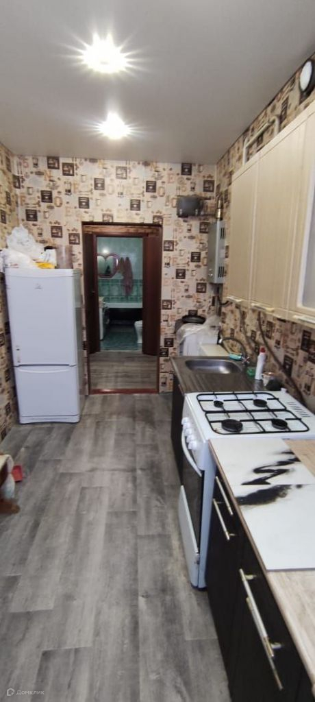 Кирпичный, теплый.Современное отопление, новые пластиковые трубы и батареи.Окна ПВХ, натяжные потолки, на полу ламина, на кухне линолеум.Санузел в плитке.