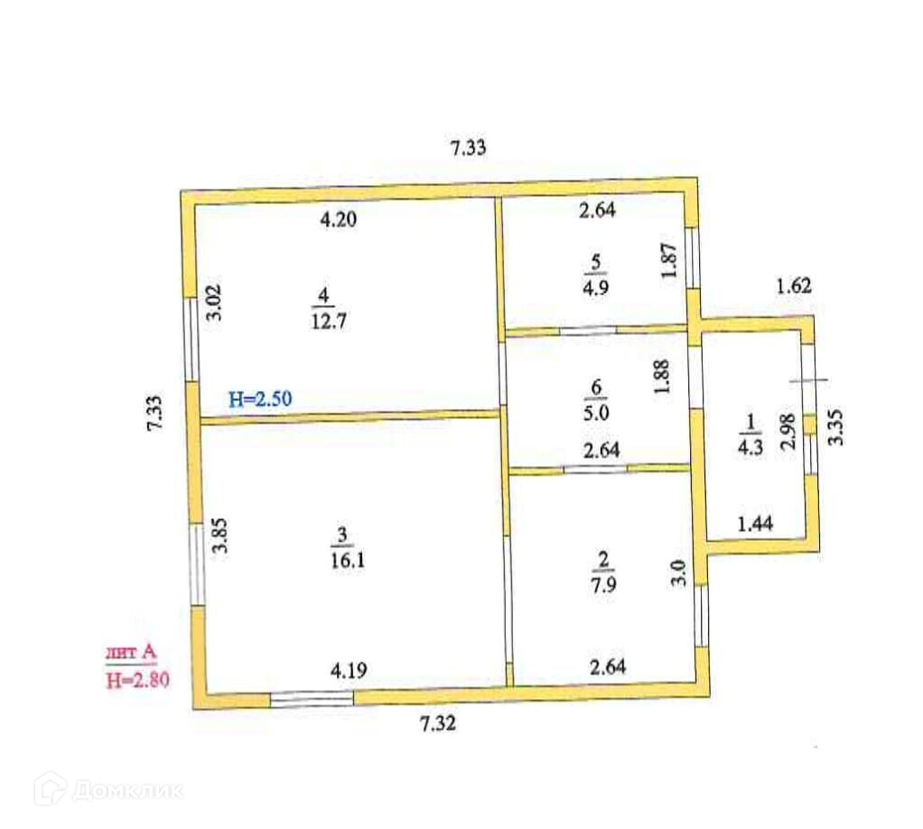 Общая площадь дома составляет 53,2 квадратных метра, включая две комнаты, кухню, коридор и санузел.