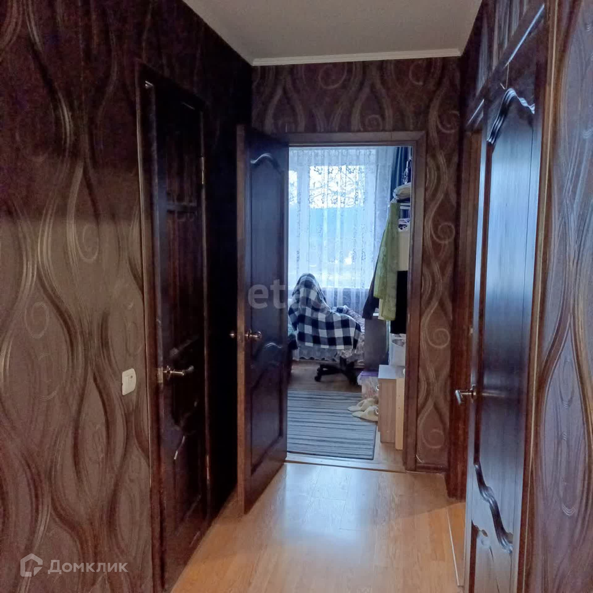 Напольное покрытие: в прихожей - ламинат; в жилых комнатах - паркет; в кухне, санузле - плитка.