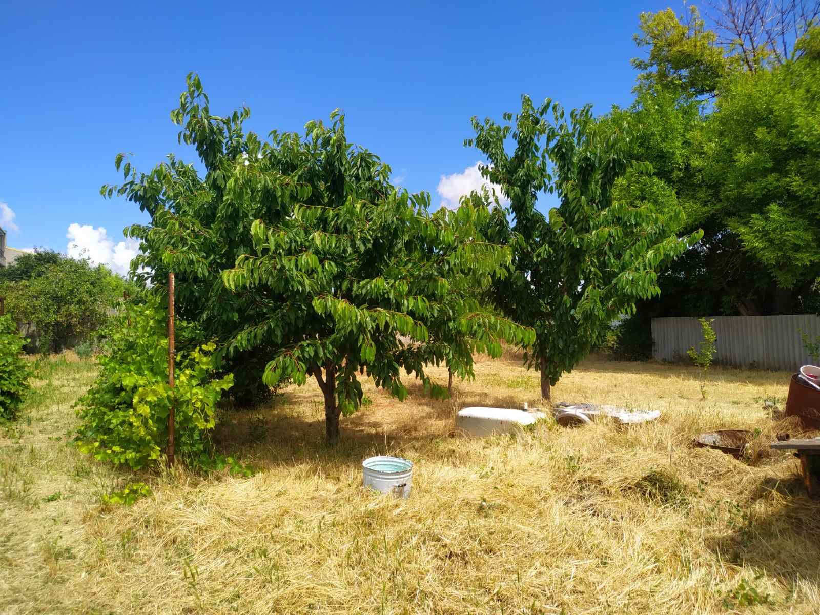-на участке плодородные деревья: слива, яблоня, черешня, вишня, абрикос, алыча, шелковица, грецкий орех. Виноградники, крыжовник, чёрная смородина, малина.
