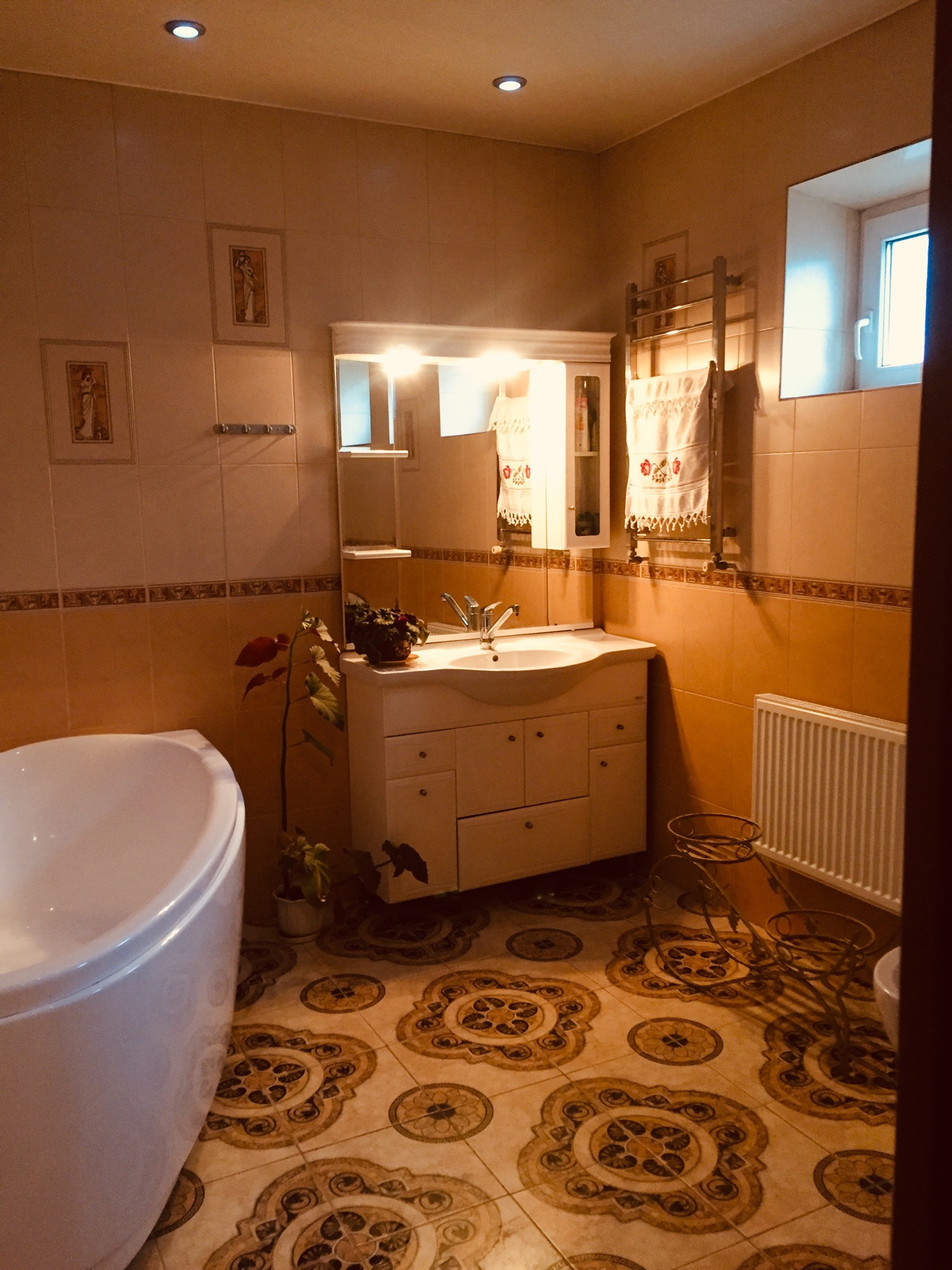 1-й этаж: прихожая, кухня с кладовкой и вторым выходом в сад, кабинет, каминный зал, большая ванная комната, котельная. Пол тёплый. Высота потолков 3,00 м.