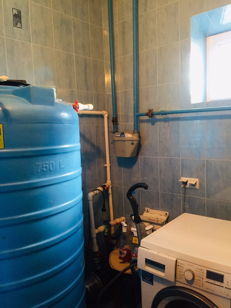 Огород с капельным поливом и емкостью для нагрева воды.