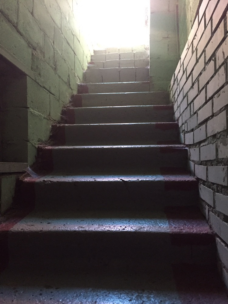 Глубокий подвал с добротными металическими стеллажами.