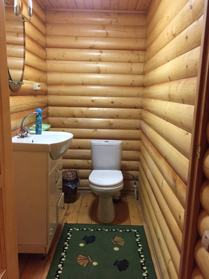Баня на дровах, 2-х этажная, оформлена в охотничьем стиле, шкурой лося, рогами, картинами.