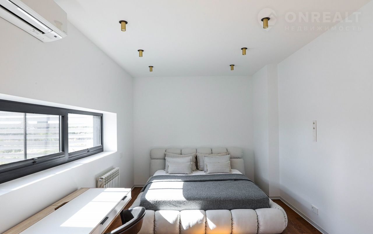 Отделка выполнена дорогостоящими, импортными, экологичными материалами по индивидуальному дизайн-проекту. Кухня изготовлена по индивидуальному заказу и наполнена встроенной бытовой техникой. Сантехника премиальных европейский брендов.