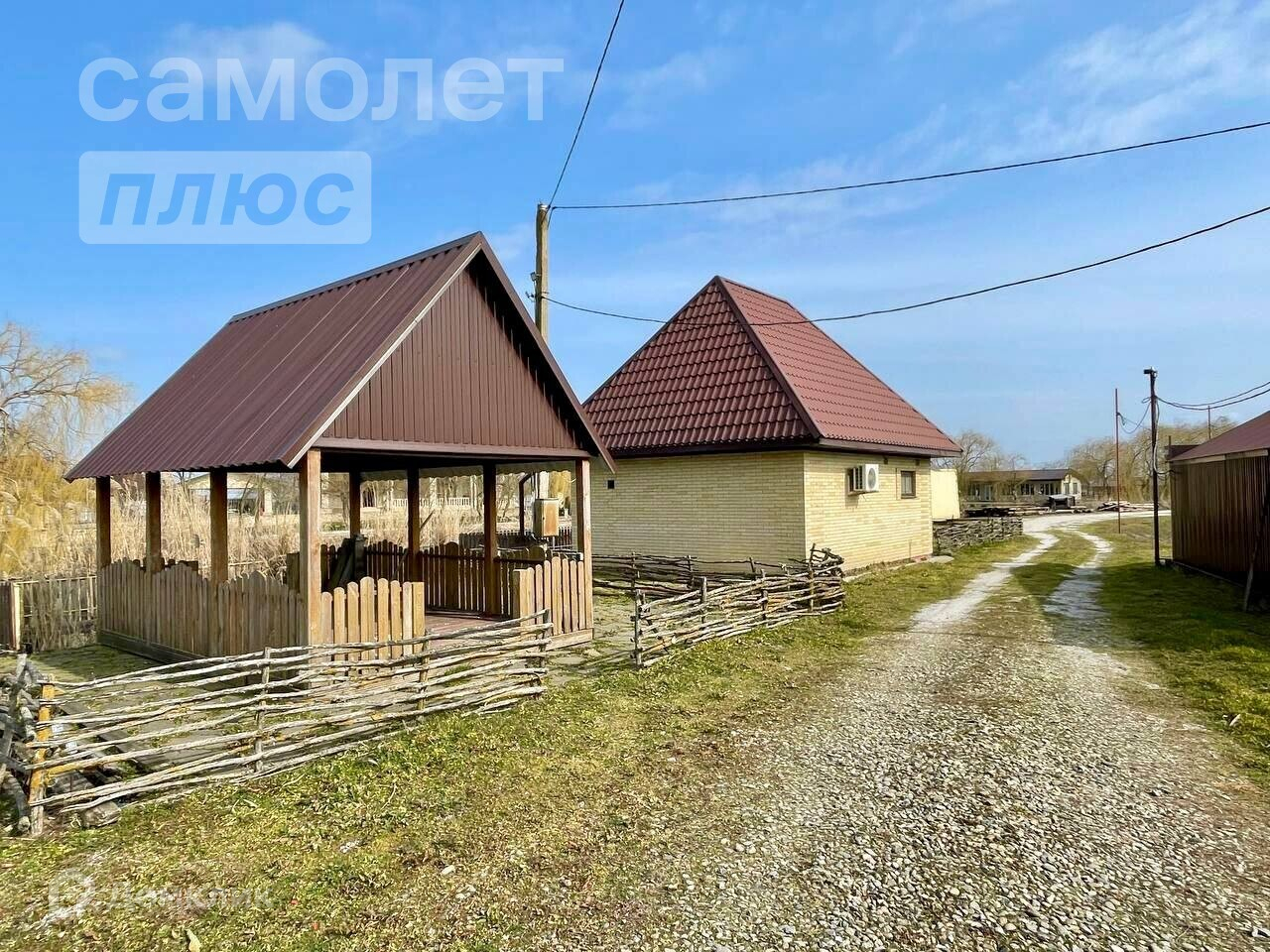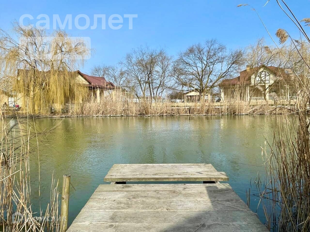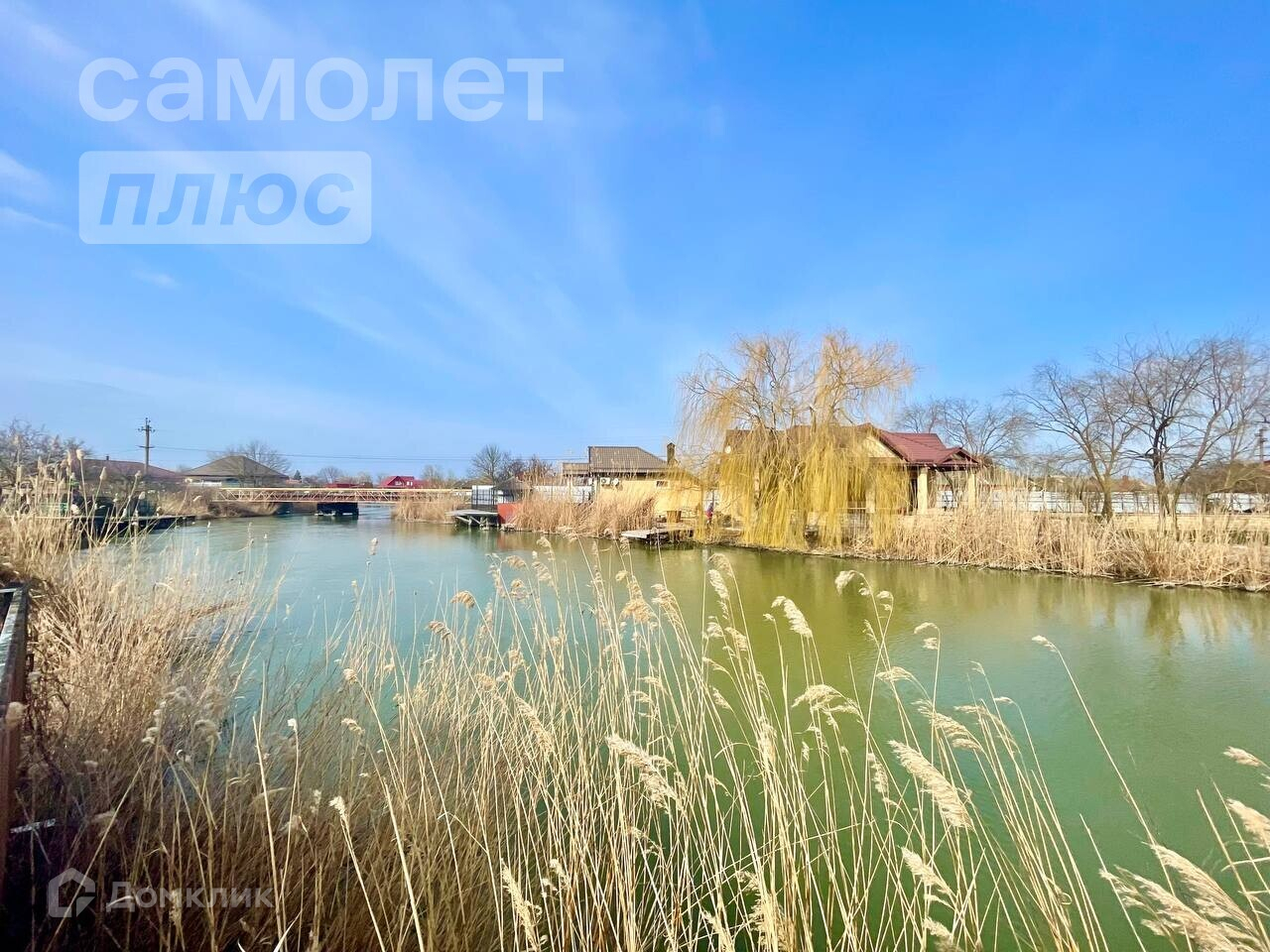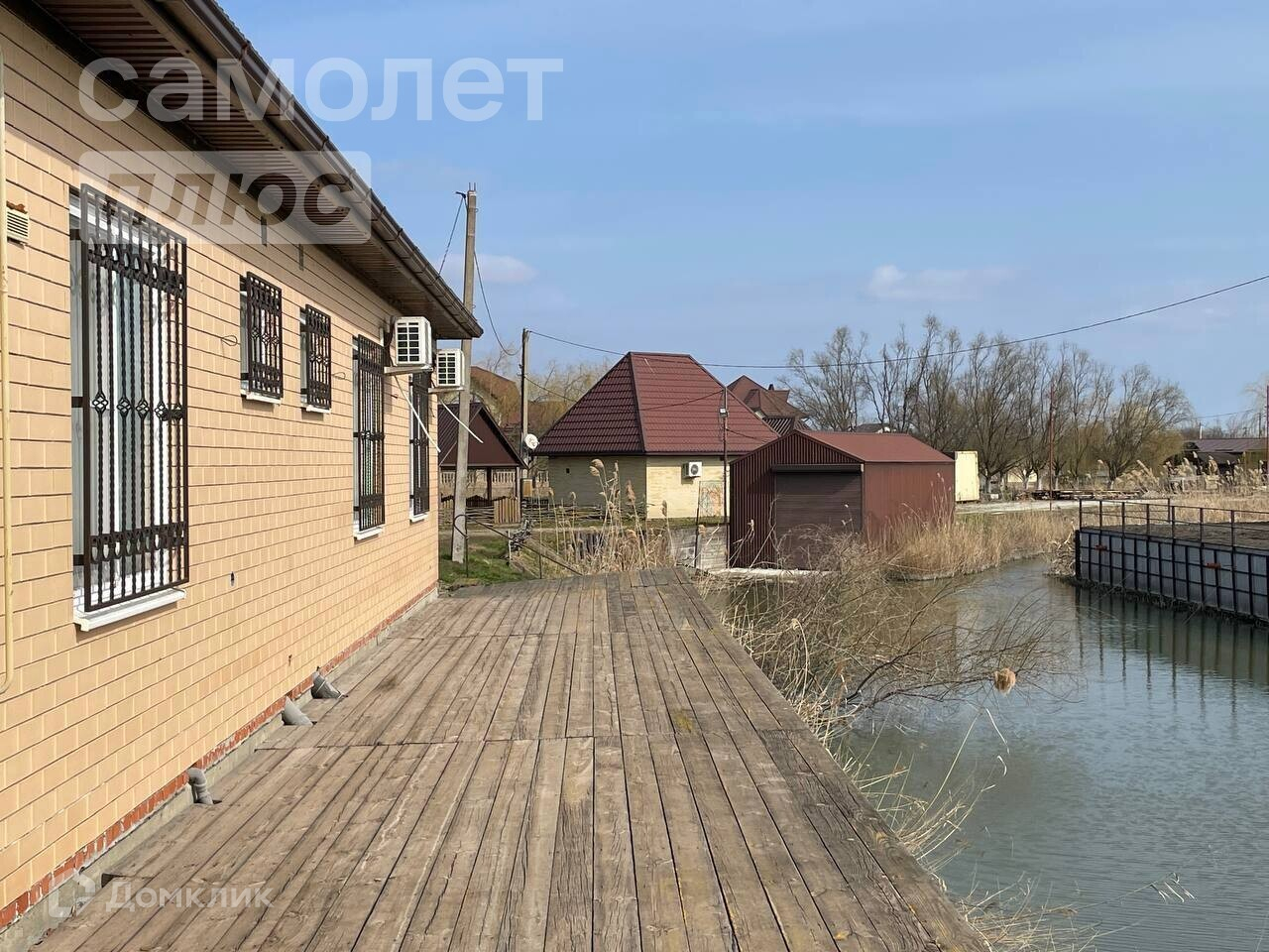 На полуострове, который омывают два канала располагаются различные фруктовые деревья, две беседки, три пристани, гараж, два жилых вагончика, оборудованный гостевой дом 29м кв, и дом 164м кв.