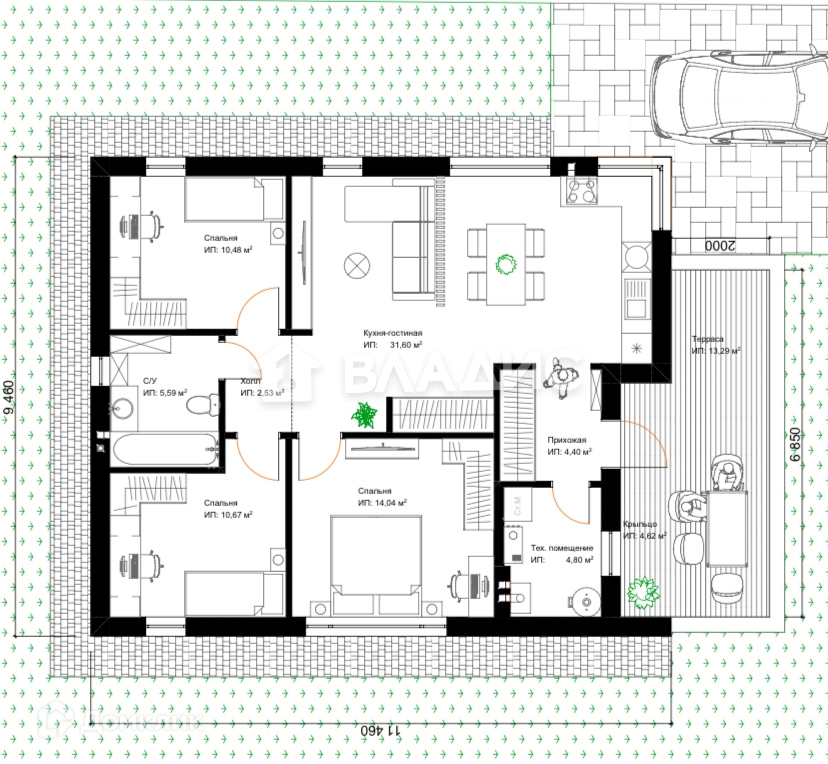 Общая площадь 90 м2