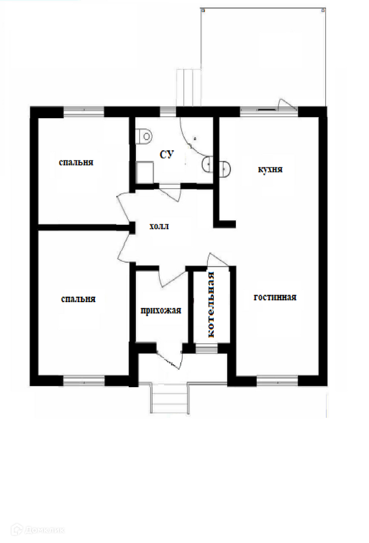- в доме две спальни, совмещенный санузел, просторная кухня-гостиная с выходом на крытую террасу, котельная;