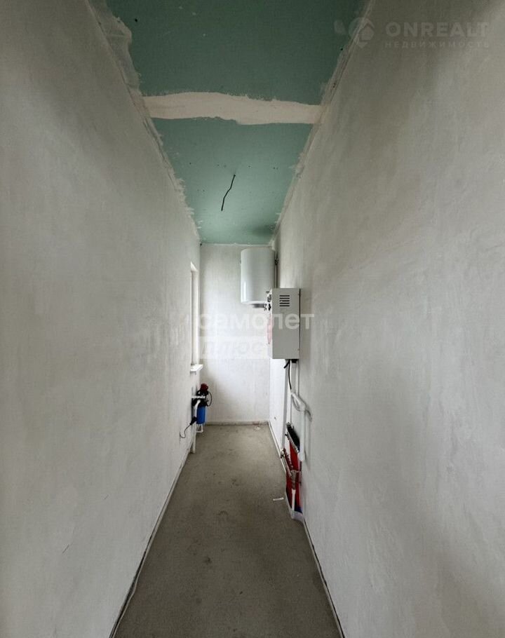 Установлен Электрический котёл, водяной бойлер, сделана электроразводка и стяжка пола, потолок выровнен гипсокартоновыми панелями.