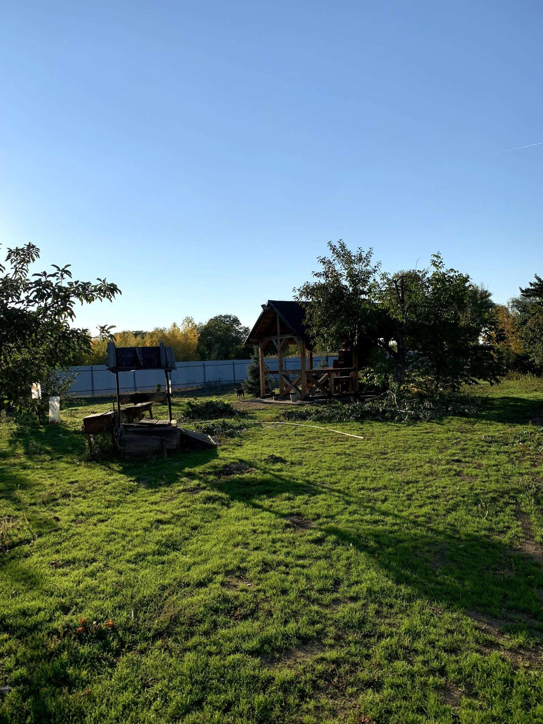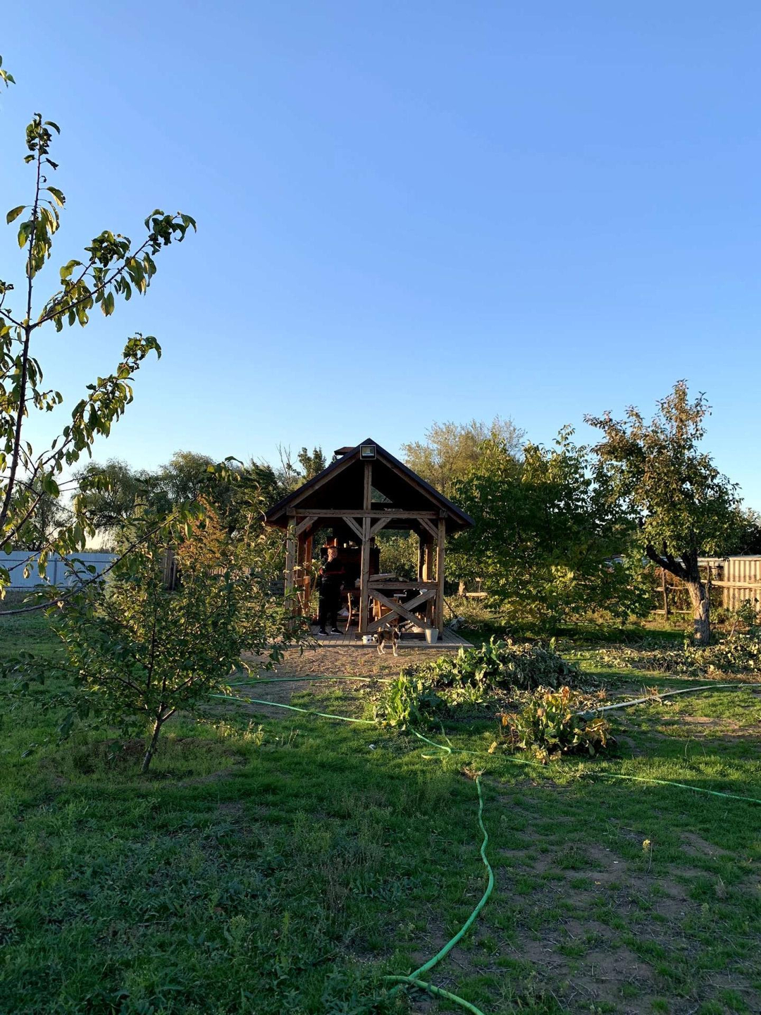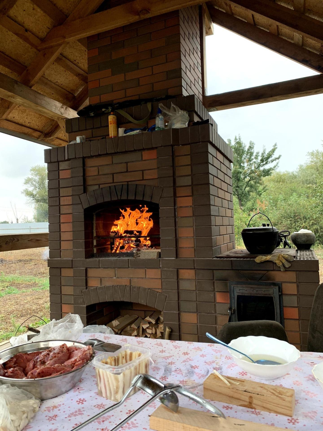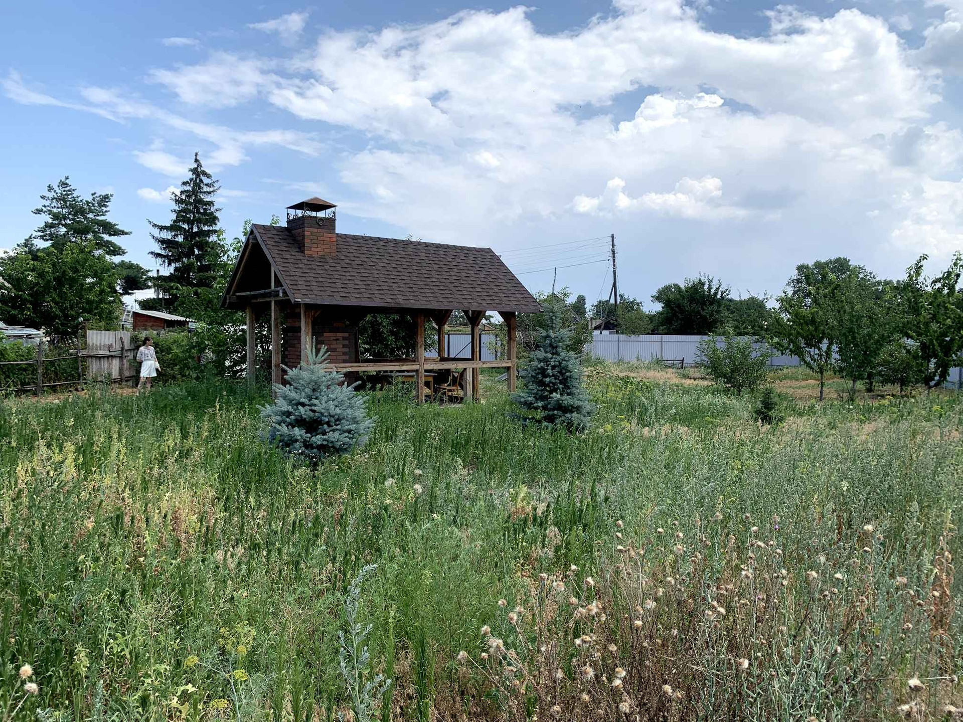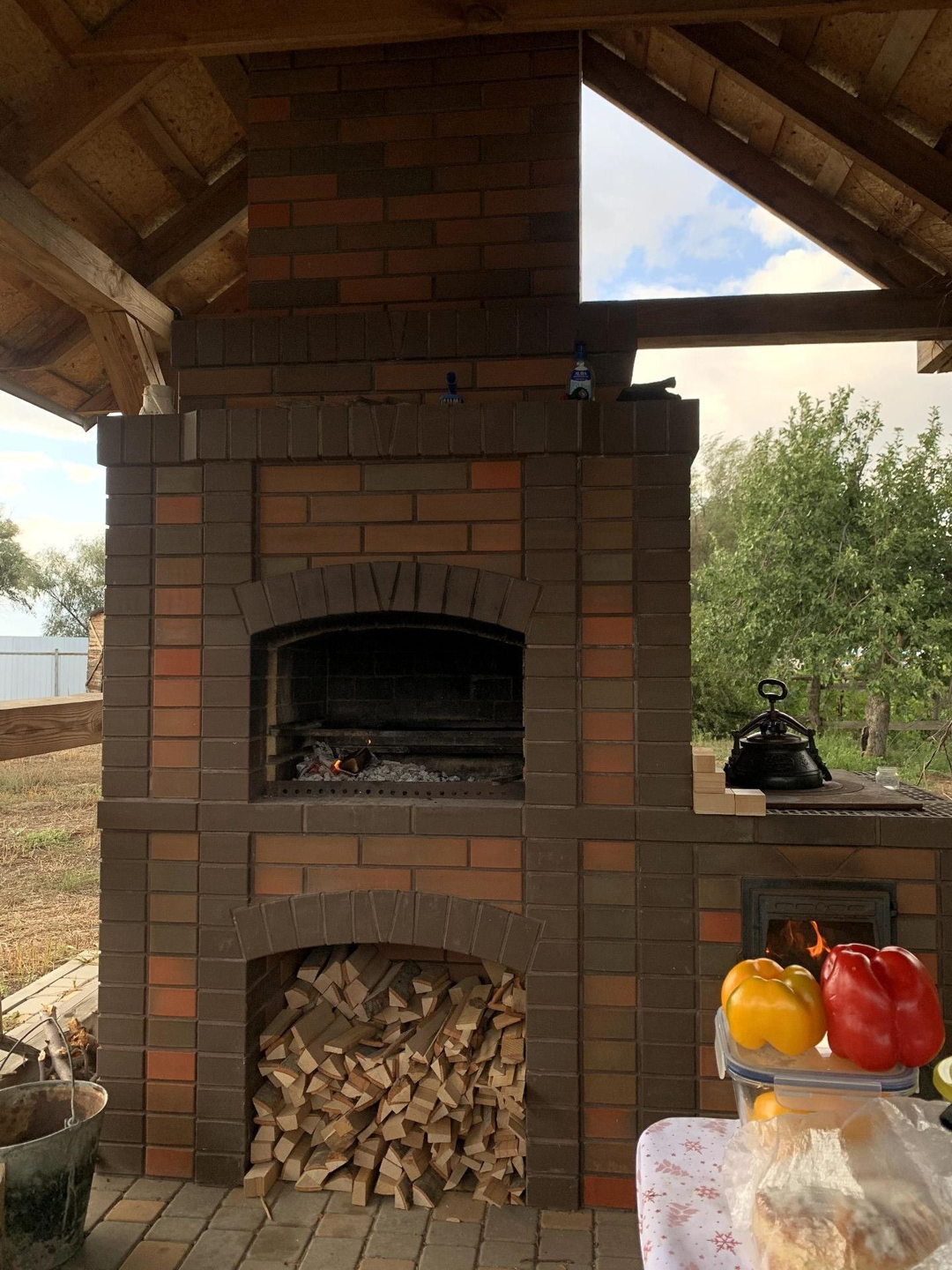 На участке есть беседка и печка с мангалом из кирпича.