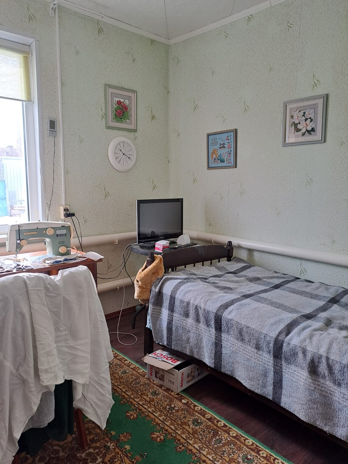Сборно-щитовой, обложен кирпичом. Продажа от собственника. В доме 1 холодный коридор, 2 теплых. Санузел в доме раздельный. Вода центральная хорошего качества без проблем. Отопление газовое автономное. Канализация-септик переливной. За 7 лет откачивали 1 раз. Дополнительно, пробурена скважина, на полив или купаться. Из блоков построены 3 сарая. Есть уличный туалет. Остается сплит-система в зале, стиральная машина Indesit, газовая плита Hansa, шкаф-купе, большой диван в зале. На отопление газовый котел. На нагрев воды в доме-газовая колонка. На участке посажены плодоносящие более 17 фруктовых деревьев, кусты ежемалины, малины, черной и красной смородины. Капитальный гараж без ямы. Летняя кухня с газовой плитой и погребом.Газ центральный. Асфальтированная дорога ведем прямо к дому. В хуторе есть: школа 11 лет, фельдшерский пункт, Почта России, клуб, несколько магазинов.